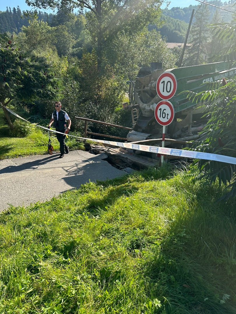 Deštrukcia nastala po prejazde auta prevážajúceho betón na stavebné práce cez most, ktoré tam následne uviazlo. „Správa a údržba ciest Prešovského samosprávneho kraja v súčinnosti s mestom Levoča pracujú na dodávke, osadení a montáži dočasného pontónového mosta, čím sa obnoví funkčnosť prechodu miestneho obyvateľstva. Rieši sa aj vyprostenie uviaznutého vozidla na poškodenom moste," vysvetlila Novotná Čajová.