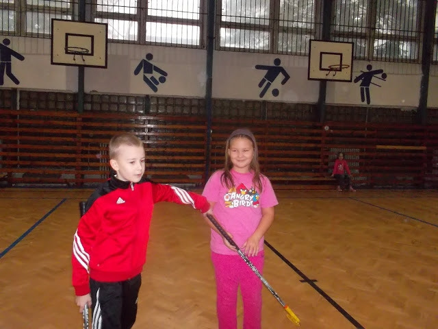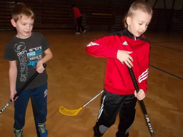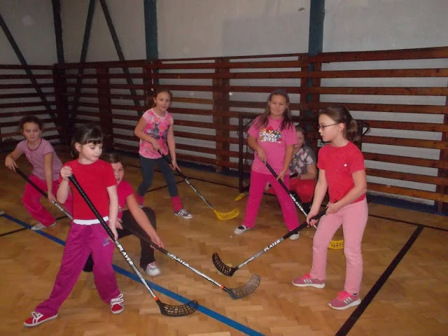 Ukázal nám, ako držia hokejku útočníci či brankári. Za pomoci pani učiteľky telesnej výchovy Aleny Geffertovej nám vysvetlil pravidlá hry. Vyskúšali sme si to aj my sami a potom sme si zahrali krátky zápas. Najprv hrali chlapci a potom dievčatá. Až po tomto nácviku  sme si zahrali všetci spolu. Keďže Alex „vyučoval“ tretiakov a štvrtákov, spojili sme si tímy. Napokon sme vyhrali 3:0.