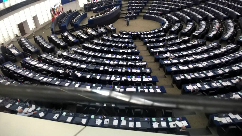 Následne sme s našou sprievodkyňou navštívili rokovaciu sálu Európskeho parlamentu, kde sme mohli naživo sledovať dianie a vypočuť si, čo problematiku, ktorú práve riešili poslanci EÚ. Konkrétne sa v parlamente riešila problematiku utečencov a Turecka.
