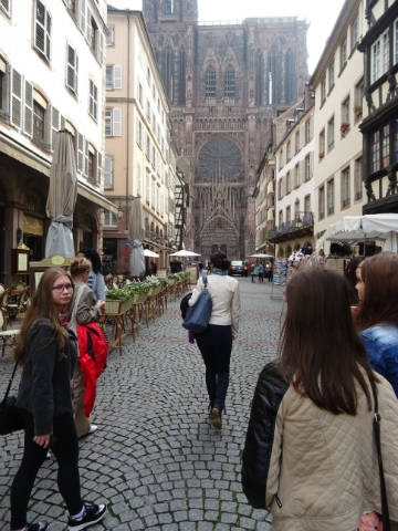 Čo všetko sme tam zažili? Pred príchodom do Štrasburgu sme sa ubytovali v mestečku Erstein. Ráno sme nastúpili do autobusu, ktorý nás odviezol do centra Štrasburgu, kde sme sa mohli pokochať rôznymi pamiatkami ako napr. katedrálou Notre Dame, odkiaľ máme množstvo pekných fotografií. Mestom nás sprevádzala vedúca kancelárie poslanca, pani Lýdia Miartus, ktorá nám porozprávala o histórii mesta a spolu s ňou sme absolvovali prehliadku mesta z výletnej lode. Po skončení plavby nás čakal slávnostný obed v historickej reštaurácii Au Gutenberg, kde sme ochutnali typické francúzske jedlá. Po výbornom obede sme sa poprechádzali historickými uličkami Štrasburgu a nakúpili rôzne suveníry.