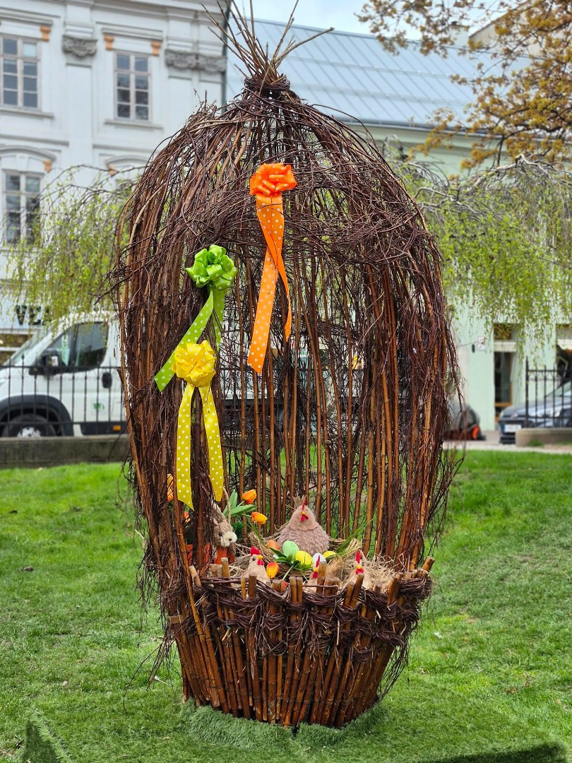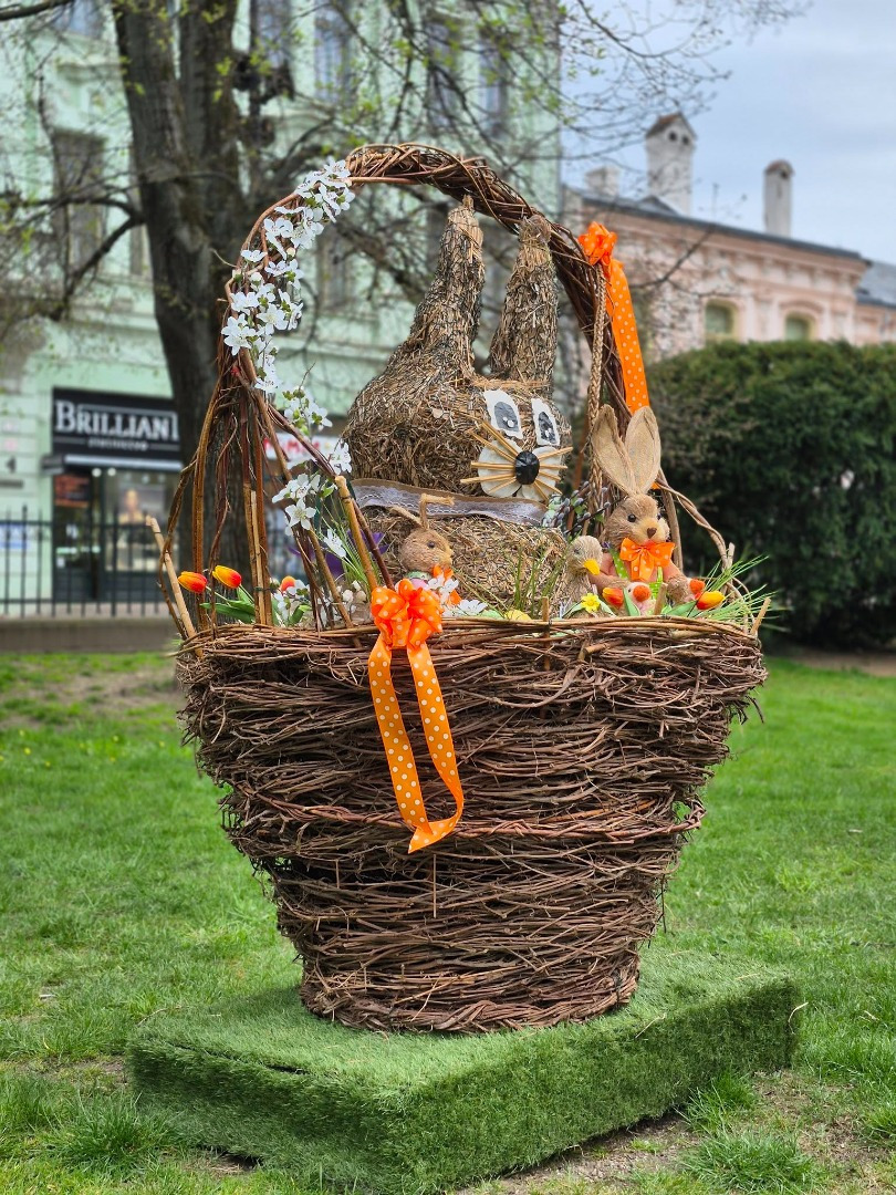 V Južnom parku osadila Správa mestskej zelene v Košiciach veľké prútené vajíčko a košík z prírodných materiálov – s tematickými motívmi a ozdobami, ktoré pripomínajú symboliku Veľkej noci.