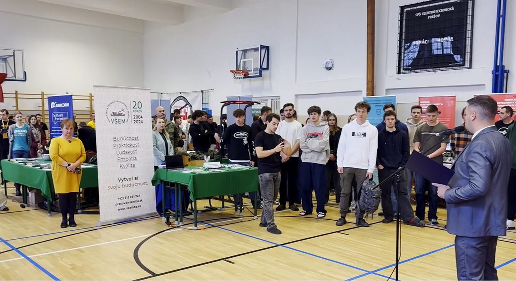 „Chceme na jednom mieste odprezentovať žiakom viaceré vysoké školy, aby sme sa možno vyhli tomu, že žiaci musia cestovať za tou vysokou školou a tu to majú vlastne v telocvični na jednom mieste. Dozvedia sa všetky informácie, ktoré potrebujú,“ uviedol Martin Broda, riaditeľ SPŠ elektrotechnickej Prešov.