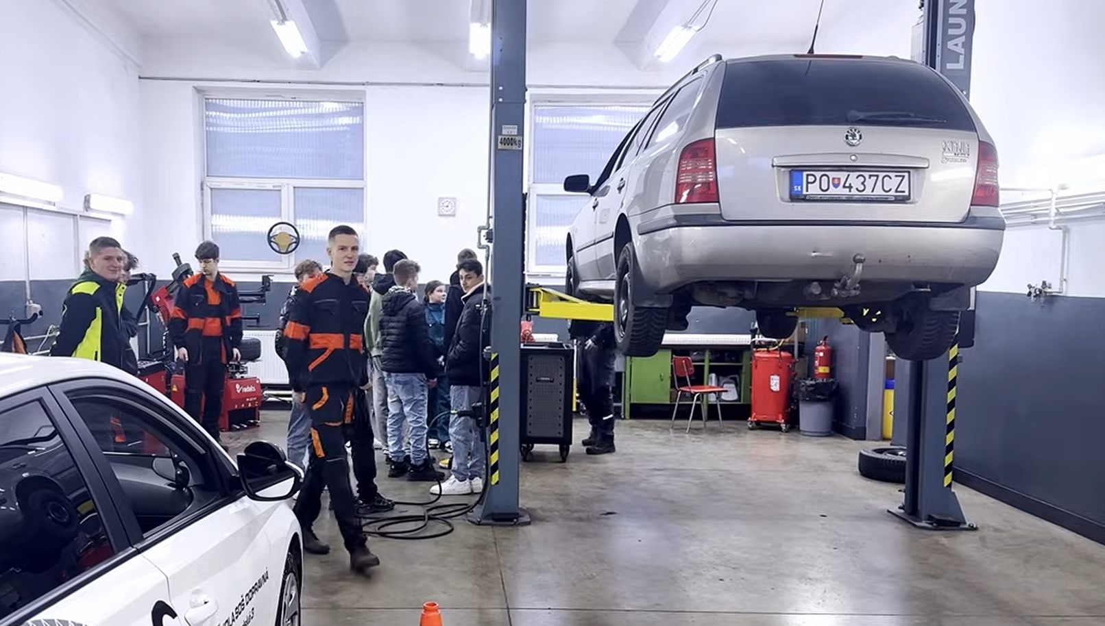 „Robíme od pneumatík prezúvanie, je tam prezúvačka, vyvažovačka, robíme diagnostiku cez tablet, potom brzdy, olej, také jednoduché veci, potom aj vyberáme motor, prevodovku, spojku, čiže v rámci možností všetko robíme,“ vysvetlil Michal Greš z odboru Autotronik.
