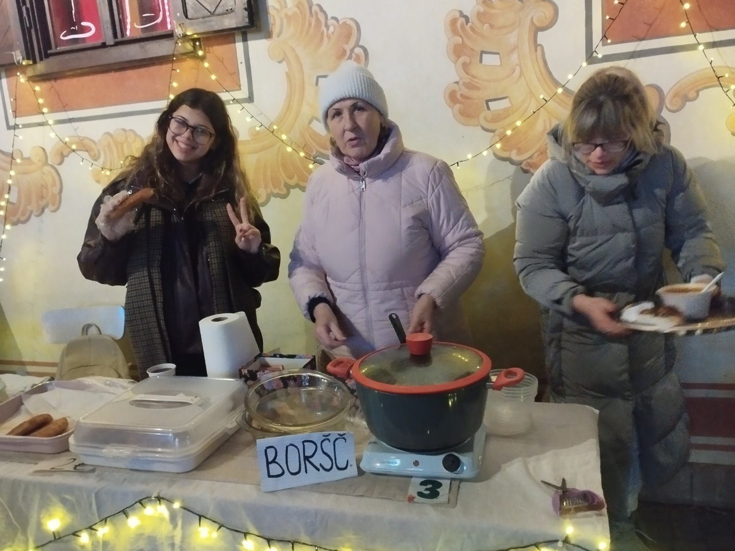 Ukrajinské odídenkyne, ako dobrovoľníčky komunitnej nadácie participujúce na Vianočnom punči na Radničnom námestí v Bardejove. (Zdroj: JJ)