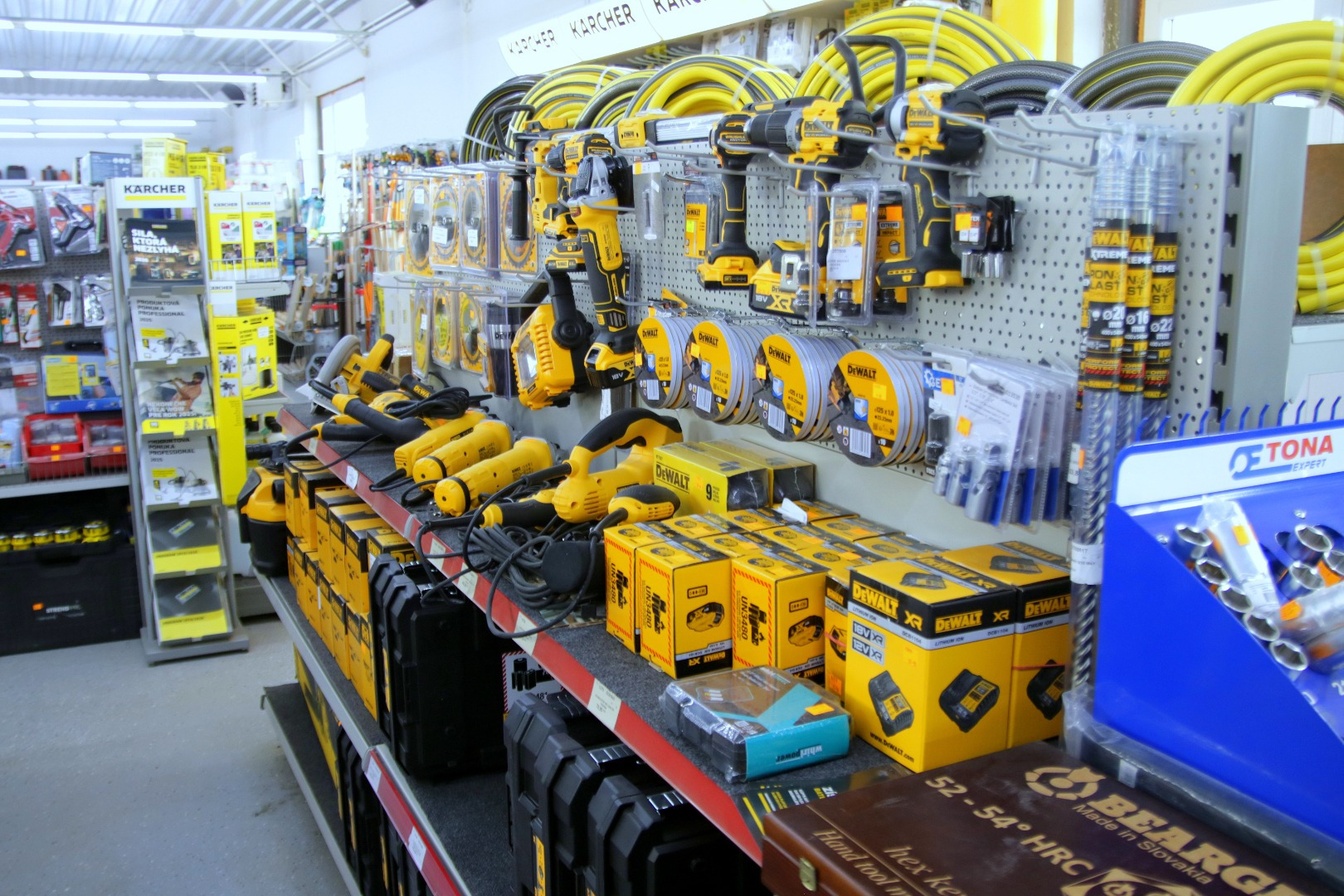 Ďalej je tu elektrické náradie. Od akumulátorového cez káblové náradie až po vzduchovú techniku ako kompresory, plus všetok spotrebný materiál pre toto náradie, ako napríklad rezné kotúče či vrtáky. Sme autorizovaným predajcom značky Kärcher a Fischer. Predávame aj značky Herman, Fiskars, Stanley, DeWalt či Worcraft. Čo všetko ponúkate v sekcii kúrenia a plotov?Kompletný predaj sporákov a kachlí na tuhé palivo a príslušenstva, ktoré k tomu patrí. Dymovody, kolená, rúry, nástroje a chémiu na ich čistenie, tiež komínové kartáče, ale aj krbové náradie.V tejto sekcii máme aj oddelenie pletív, plotov a plotových systémov. Či už ide o klasické pletivá, plotové panely, stĺpiky, brány a bráničky. K tomu všetkému samozrejme ponúkame poradenstvo a servis. Sezóna tu začína na jar hneď po zime, keď sa ľudia rozbiehajú do záhrad a dielní, na prelome februára a marca. (Zdroj: MH)