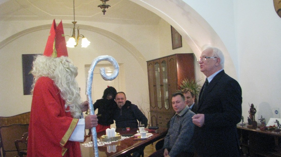 Keďže náš Mikuláš, čert a anjelici boli trošku neskôr narodení, zvládali pobehať aj iné organizácie, stihli pozdraviť nášho pána primátora MUDr. Borisa Hanuščaka, ktorého vyrušili z bežného rokovania a podľa nás sa celkom potešil, no neobišli ani vedúceho odboru školstva, pána Mgr. Reného Semanišina. Takéto spestrenie ich dnešného programu bolo skôr milým pozastavením v našom uponáhľanom svete.