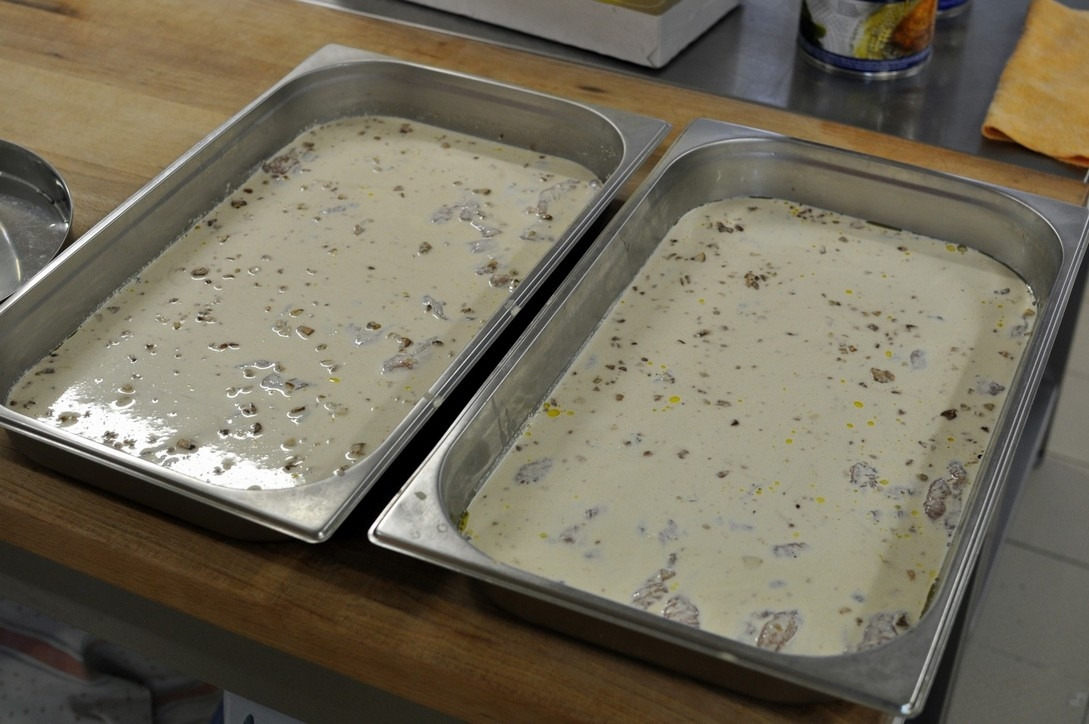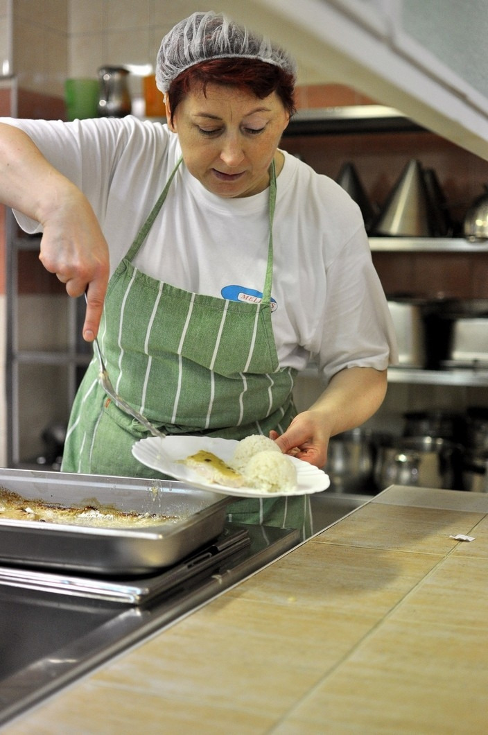 Naše panie kuchárky často pripravujú jedlá podľa nových receptúr, no v tento deň varili pod taktovkou kuchára Štefana Kišša z firmy Nestlé. Taliansku polievku minestrone bez mäsa sme už poznali a znova chutila skvele. Hlavné jedlo nám názvom nepripomínalo taliansku kuchyňu, ale lahodná chuť kuracích pŕs s hubovou omáčkou s dusenou ryžou bola predsa len iná, ako bežne poznáme. Jedlo pripravoval v konvektomate, čo je zdravé a rýchle. Za „pranzo ottima“ (výborným obedom), ako by povedal taliansky gurmán, nasledovala ochutnávka tiramisu ako prezent od kuchára pána Štefana Kišša a firmy Nestlé.