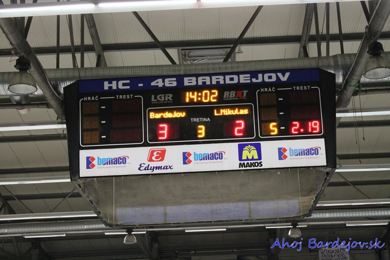 HC 46 Bardejov – MKH 32 Liptovský Mikuláš 5:3 (1:1, 2:0, 2:2)