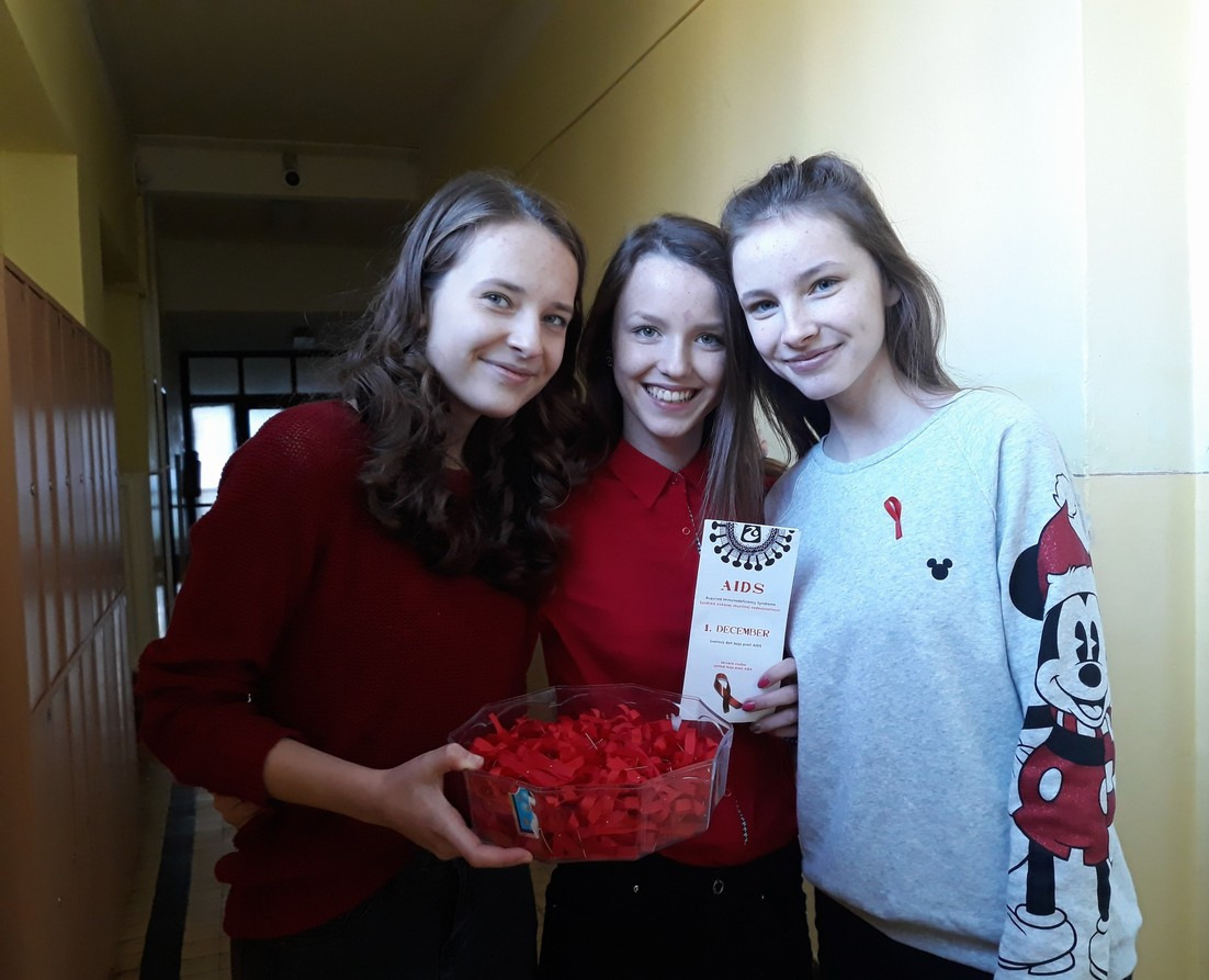 To, že sa žiaci zaujímajú o ľudí s HIV a AIDS, nie sú k problému ľahostajní, a venujú sa vzdelávaniu, aby sa HIV nešírilo, dokazovali červené stužky, ktoré si sami zhotovili a nosili v dňoch od 27.11.- 1.12. (Svetový deň boja proti AIDS).