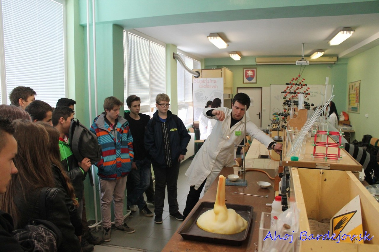 Učiteľka chémie z gymnázia Michaela Drotárová o DOD prezradila: „Na základe pokusov sme chceli žiakom ukázať, že chémia nie je len nudná, ale aj zábavná veda. Na základe predvedených pokusov sme im aj vysvetlili chemické reakcie, ktoré prebiehajú pri týchto pokusoch. Žiakom sme ukázali, ako vybuchuje sodík vo vode, ďalej sme im ukázali, ako zapáliť pomocou iných látok bez použitia vody alebo ako dostať vajíčko do banky s úzkym hrdlom. Zaujali aj blesky v skúmavke.“ A prečo by si mali žiaci vybrať túto školu? „Vyučujeme pomocou experimentov. Je lepšie raz vidieť ako stokrát počuť,“ uviedol taktiež učiteľ chémie Martin Knap.