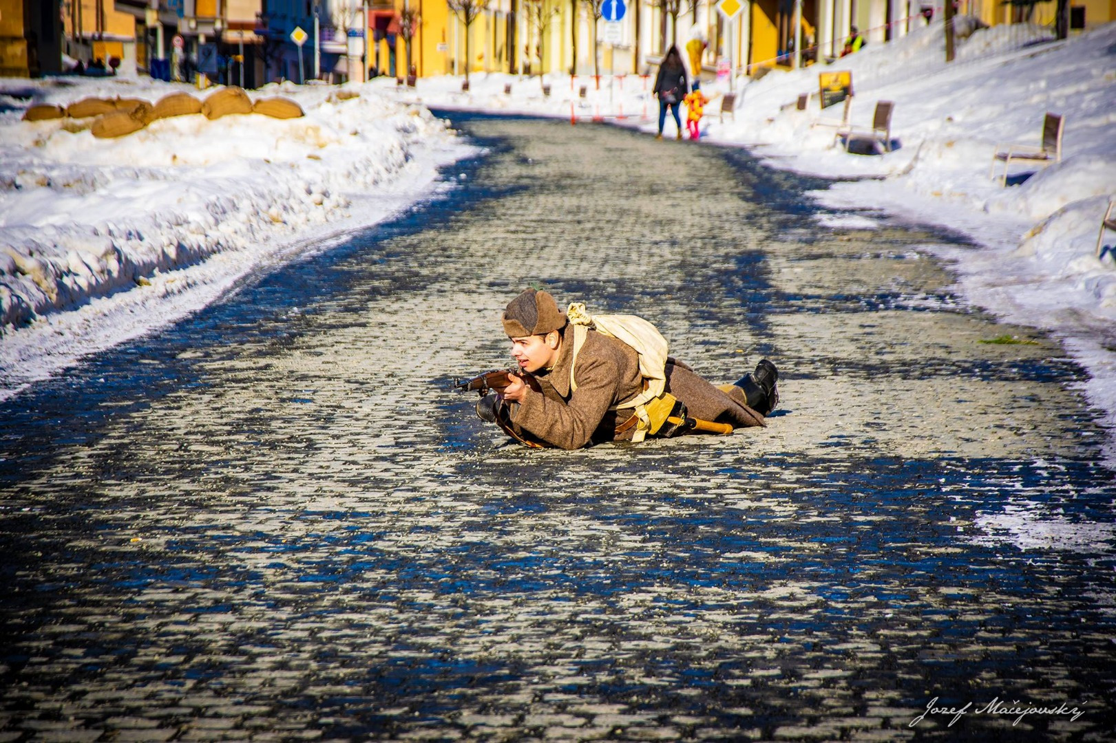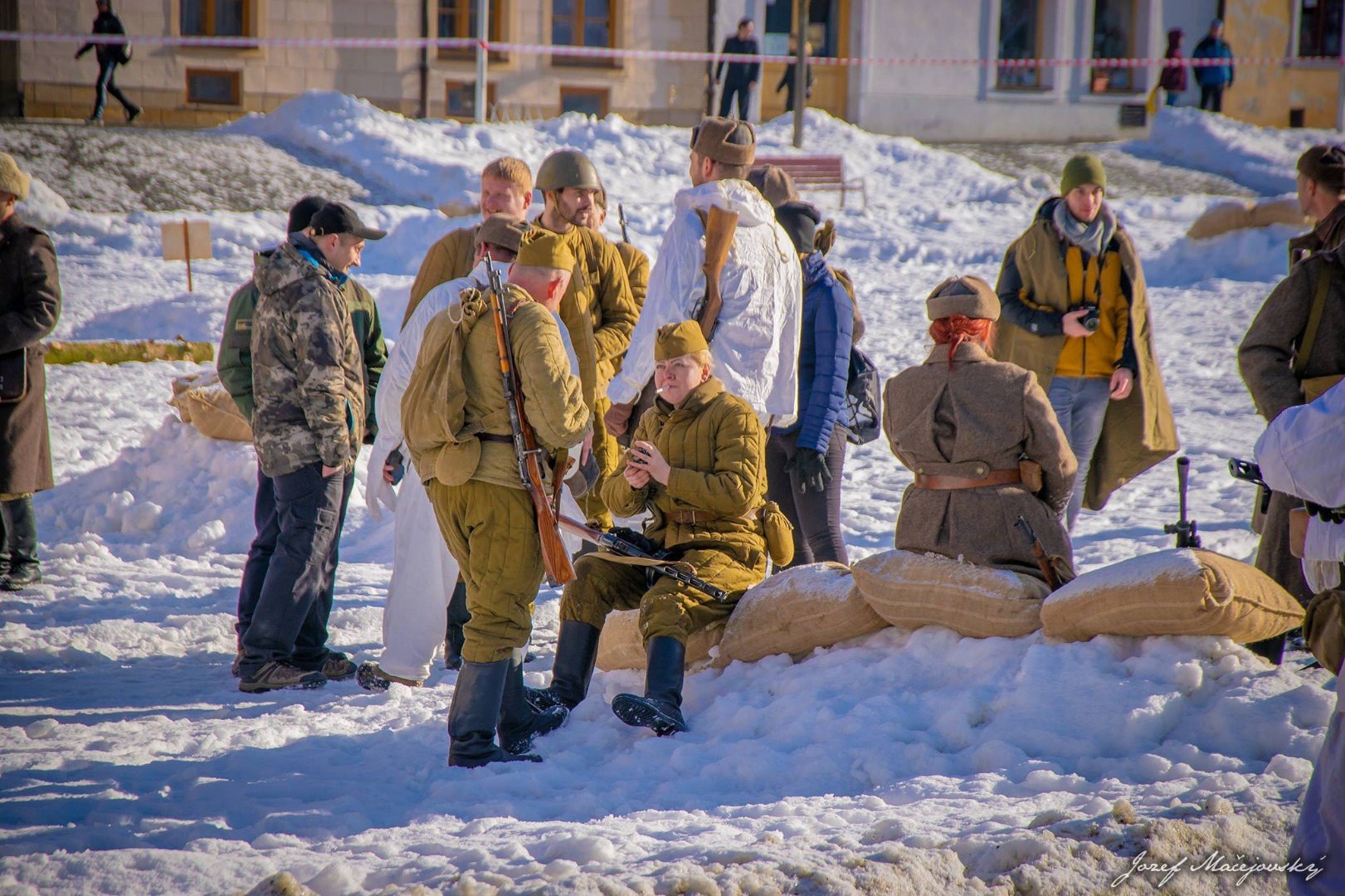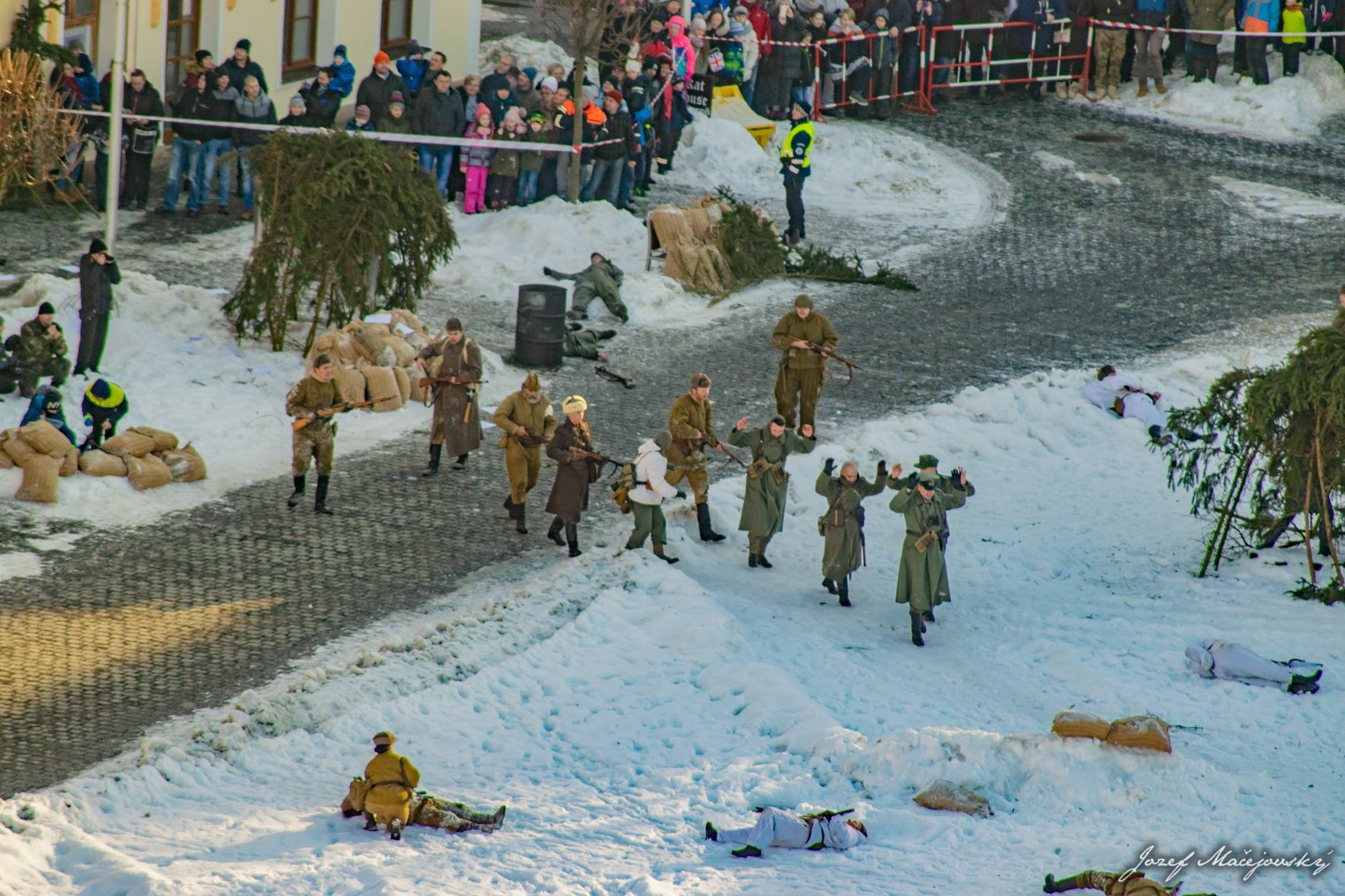 Prítomným divákom ruskí vojaci, nemeckí vojaci, 1. československý armádny zbor