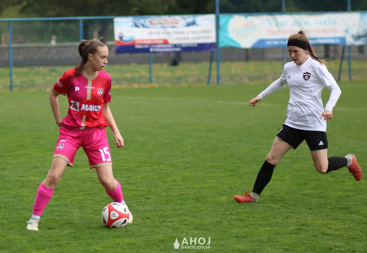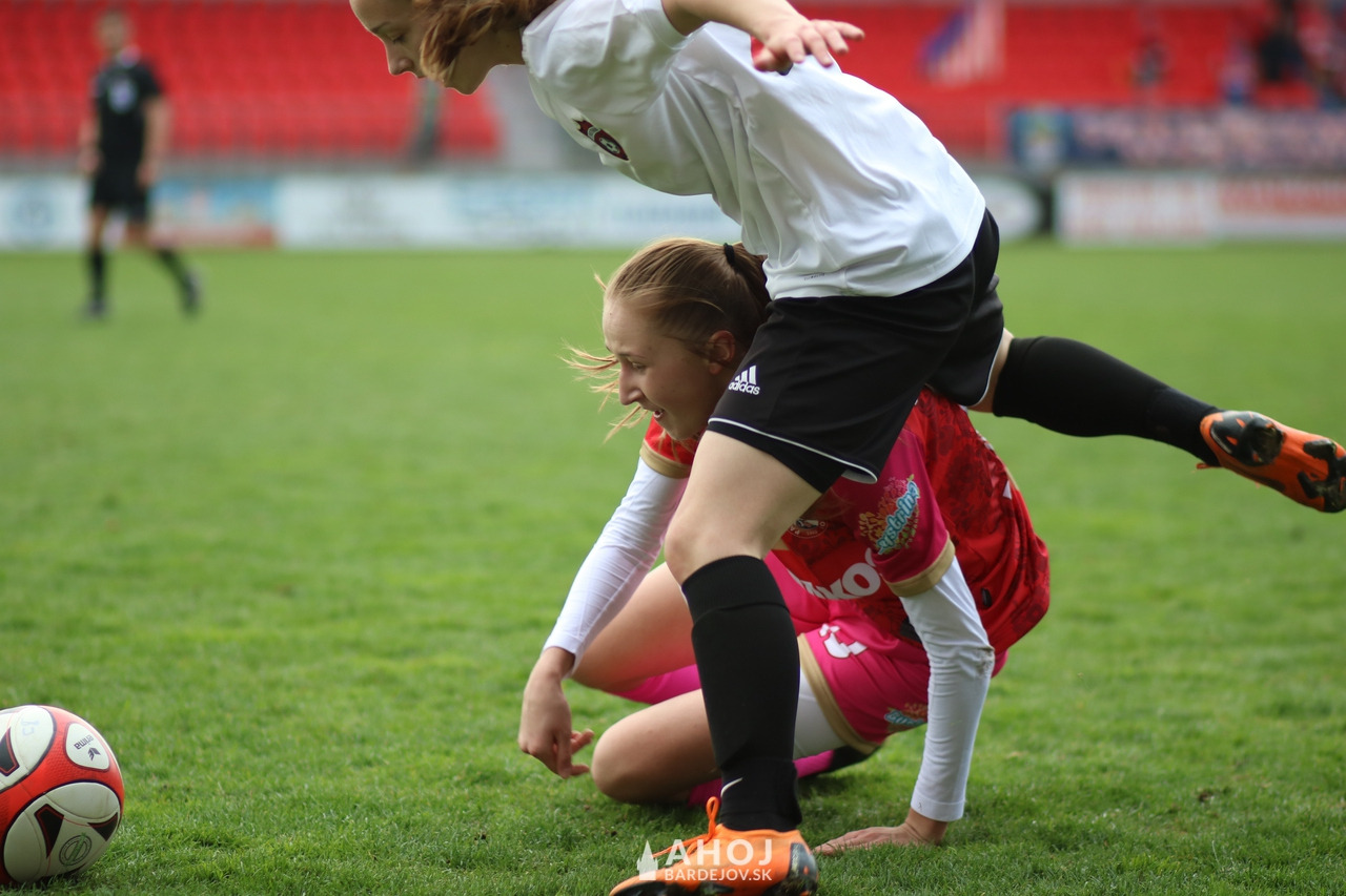 Veľmi dobrý výkon podala mladá Alexandra Tejová (vľavo). V desiatej minúte vybojovala pre svoj tím pokutový kop