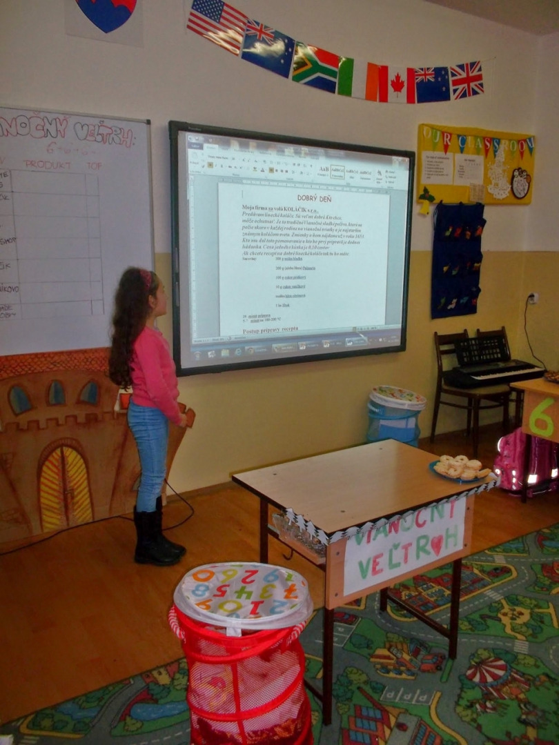 A že to nie je vždy med lízať, vyskúšali si aj naši Mudrlanti z triedy pre intelektovo - nadaných žiakov zo ZŠ na Komenského 23 v Bardejove. V rámci Slohovej výchovy a témy Reklama, bolo na ich pleciach vytvoriť fiktívne firmy, avšak s vhodným predmetom podnikania, aby na vianočnom veľtrhu v čo najvyššej možnej miere oslovili zákazníka. V prípravnej fáze lietali námety spojené s názvami firiem, žiaci ostošesť premýšľali, čo bude predmetom ich podnikania, ako zaujmú a v rámci marketingu tak padali prvé podnikateľské stratégie. Pravdupovediac, vôbec sme netušili ako náš podnikateľský zámer vypáli, asi preto sme v deň vianočného veľtrhu 3.E boli naozaj milo prekvapení.