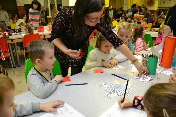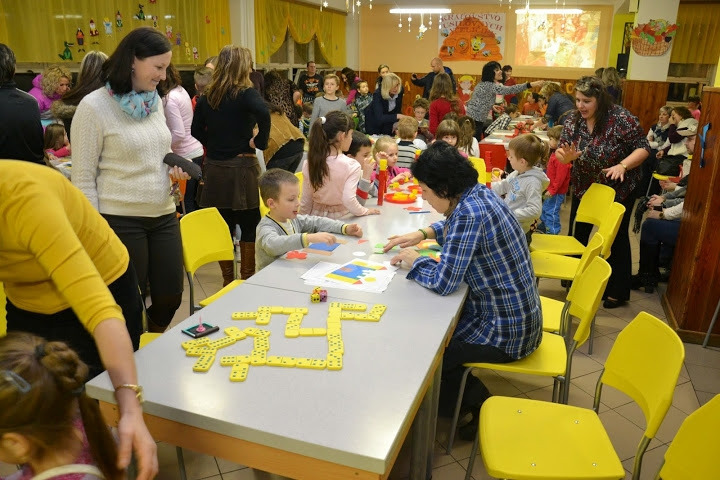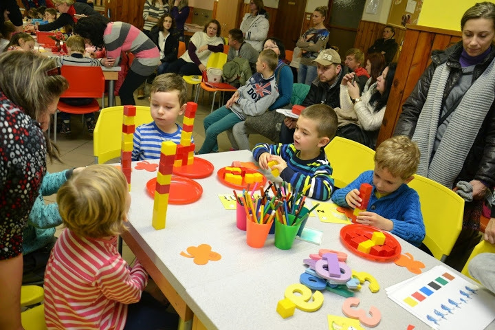 Pri štyroch pracovných stoloch pani učiteľky budúcich prvákov pripravili rôzne aktivity zamerané na zisťovanie pripravenosti na školu. Deti sa zároveň spoznávali so svojimi budúcimi učiteľkami a spolužiakmi. Medzitým rodičia v druhej „úradníckej“ časti jedálne vypisovali formuláre potrebné na zápis dieťaťa do školy.