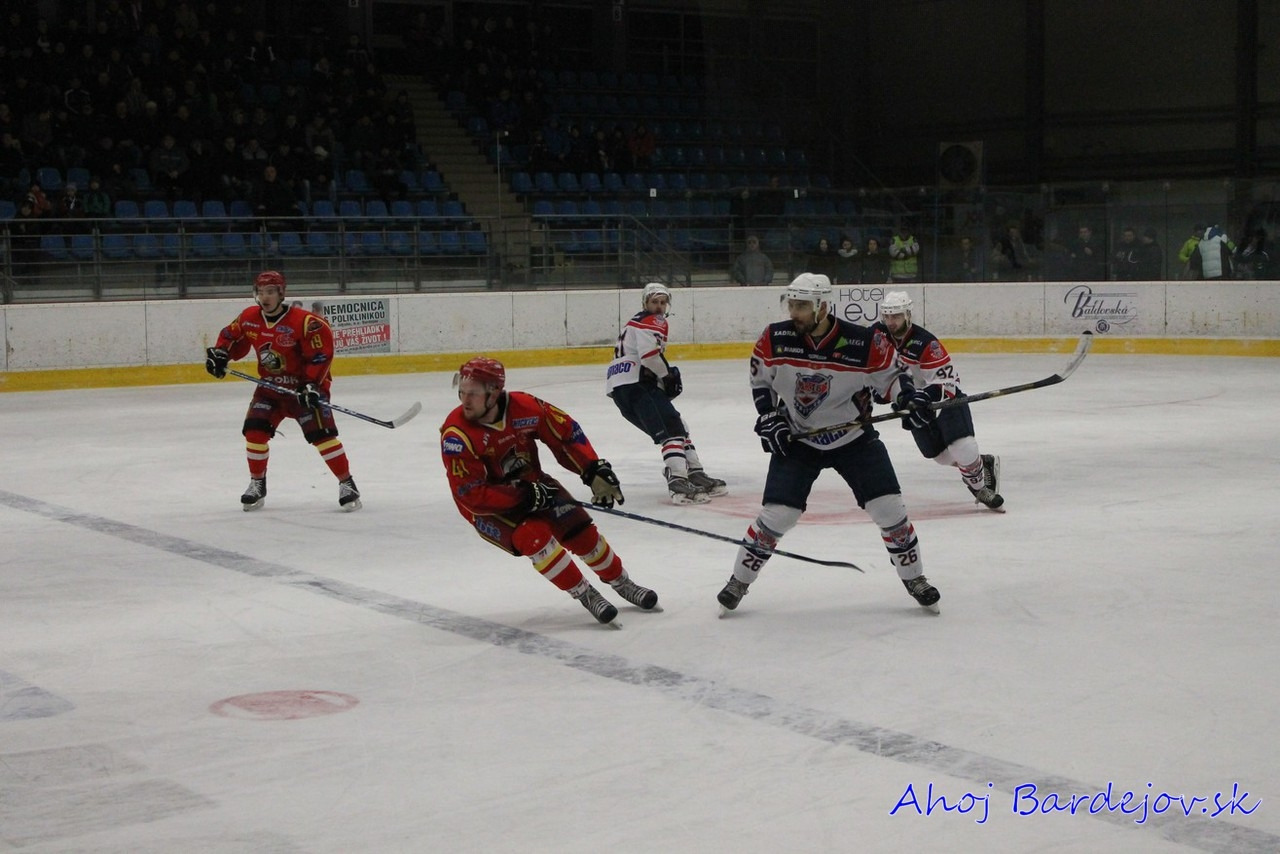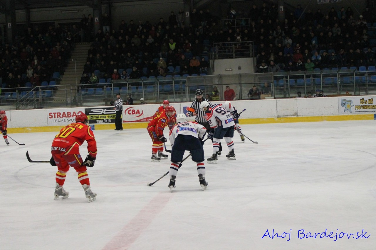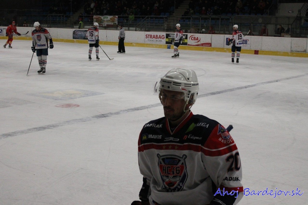 Po zbytočnom faule zo strany hostí prišlo vylúčenie, ktorého koniec prišiel predčasne. Bardejov strelil gól na 1:0 z hokejky Samira Salijiho. Saliji rozohnil spoluhráčov, ktorí začali hrať útočnejší hokej s peknými šancami na zvýšenie náskoku, no všetky šance sa skončili pri vynikajúco chytajúcom Peksovi. Druhú tretinu začalo lepšie domáce družstvo, keď sa im už v 4. minúte podarilo streliť gól na 2:0. Dlho sa však radovať nemohli, kedže už o 20 sekúnd po chybe obrancov Bardejov inkasoval na 2:1.