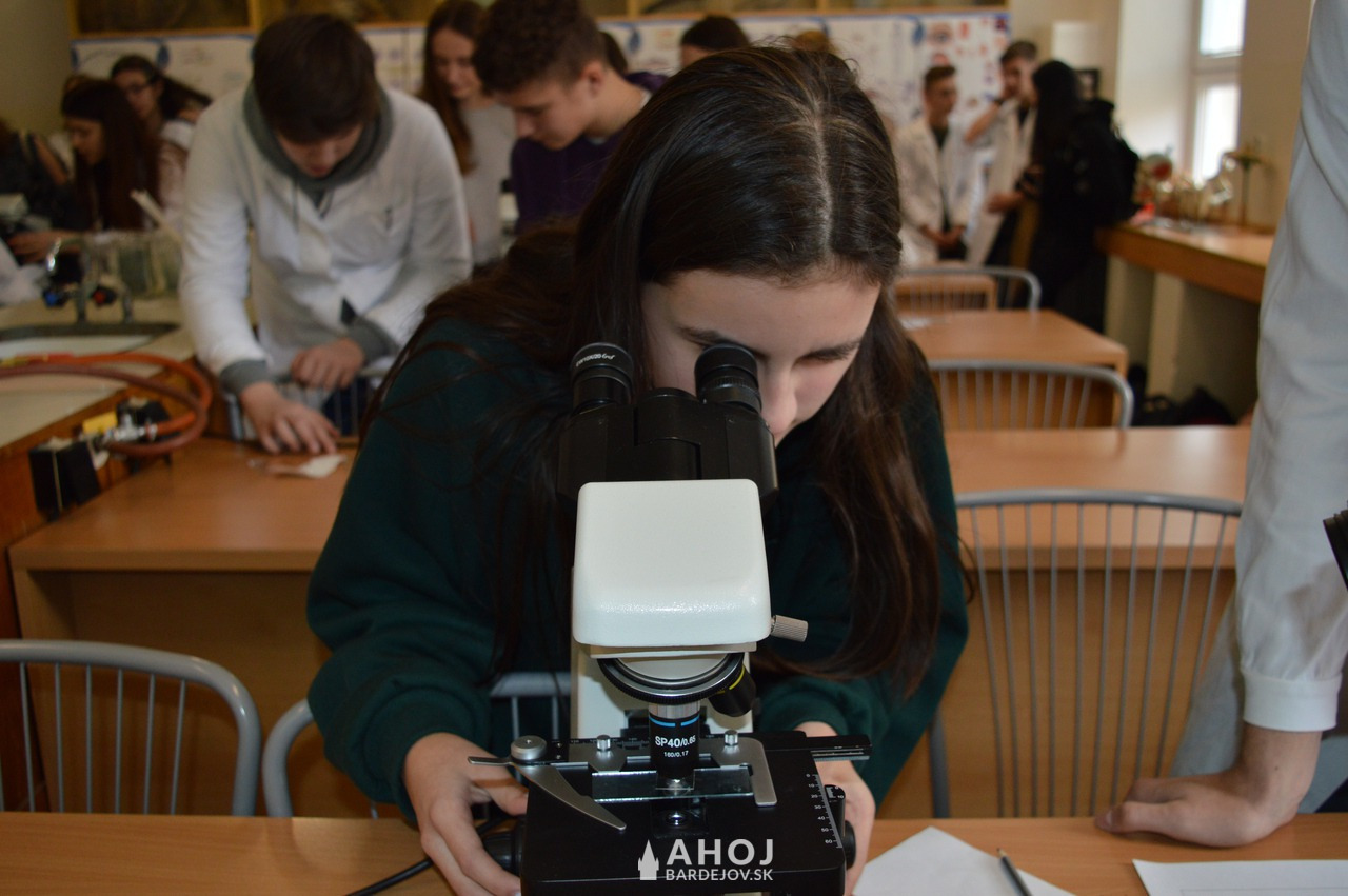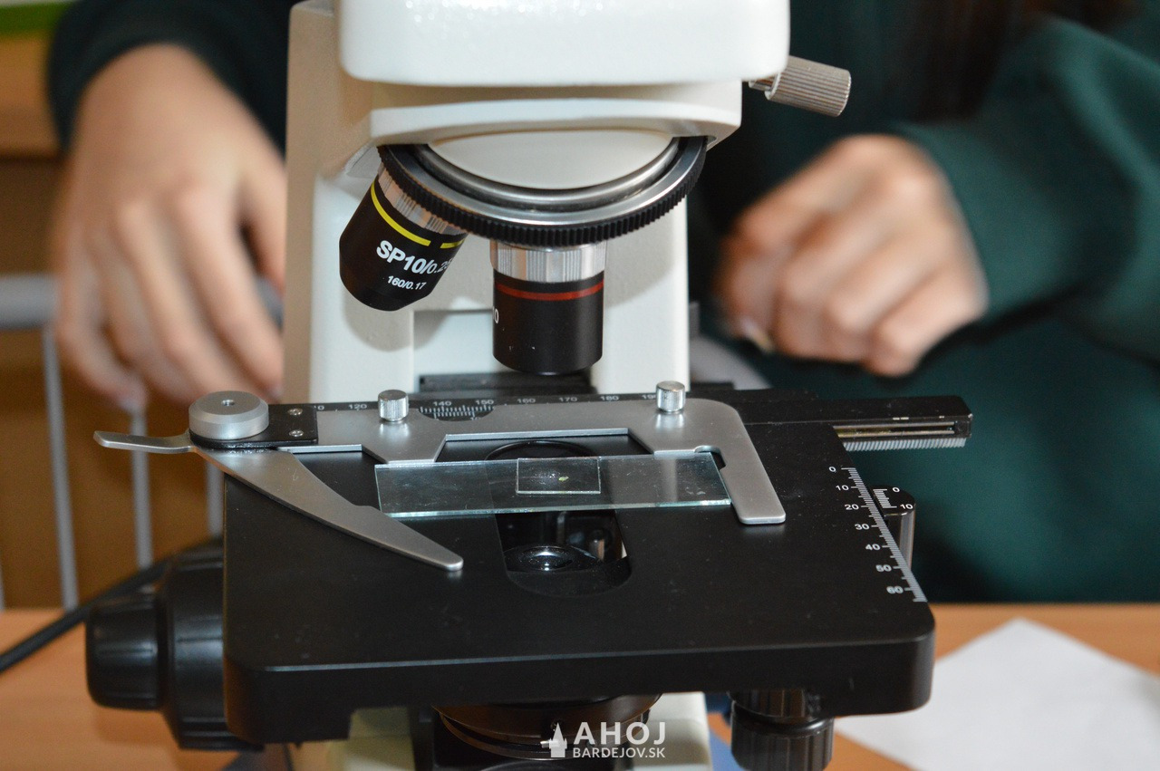 v laboratóriu, kde zhliadli prácu s mikroskopom a tiež praktické