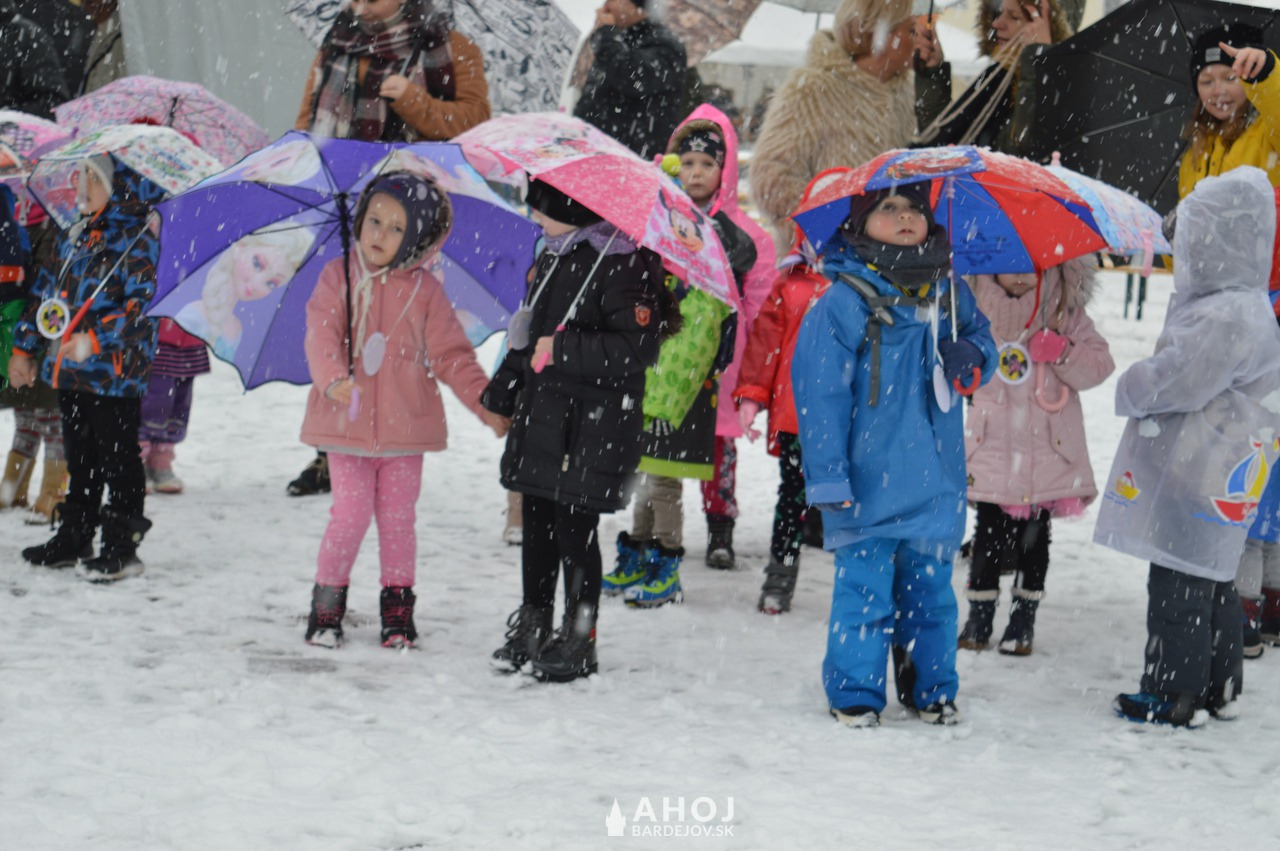 napriek nepriaznivému počasiu, prišli na námestie deti z materských škôlok, kde