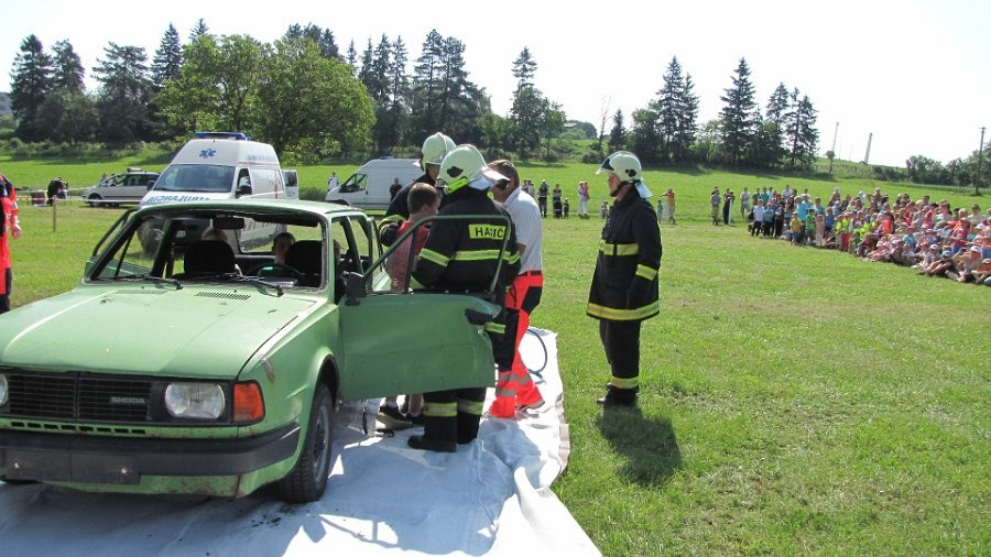 Svojou prácou sa predviedli aj záchranné zložky, ktoré na príklade fingovanej havárie osobného vozidla ukázali ako má vyzerať spolupráca pri takejto nehode a ako treba vyslobodiť zranených z poškodeného auta. Hasiči predviedli prácu „vystrihovania“ posádky z auta a záchranári ošetrenie a prevoz do nemocnice. Celý zásah odborným komentárom sprevádzal major Peter Pacher. Veľké uznanie si za odvahu zaslúžia štyria dobrovoľníci z radov žiakov, ktorí sa nebáli stať sa živými figurínami pri tejto nehode.