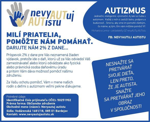 www.nevyautujautistu.sk, facebook: nevyAUTuj AUTistu, instagram: nevyautuj_autistu.