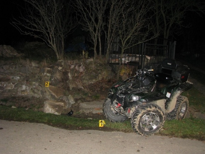 Na štvorkolke sedel ďalší muž (24), spolu sa vybrali od miestnej krčmy k futbalovému ihrisku. V ľavotočivej zákrute vodič nezvládol vedenie svojho tátoša a pravou prednou časťou narazil do múrika. Štvorkolka sa prevrátila na pravý bok a pritlačila vodiča aj spolujazdca k zemi. Vodič utrpel ťažkú ujmu na zdraví s predbežnou dobou liečenia štyri mesiace.