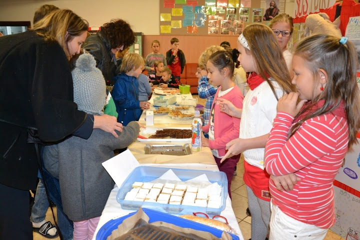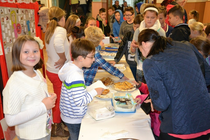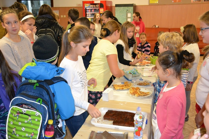Načrtnutá myšlienka finančnej zbierky pre psíky, tak dostávala reálne obrysy. Získať však môžeme len vtedy, keď aj my niečo dáme. Náš vklad bol netypický - zdravý, chutný a voňavý. Každý zo žiakov 4.E totiž spolu s rodičmi a starými rodičmi napiekol výborné koláčiky, aby sme ich v piatkové ráno 16. októbra 2015, počas Medzinárodného dňa zdravej výživy, mohli vo vestibule školy všetkým ponúknuť. Malí i veľkí žiaci, rodičia, starí rodičia, učitelia i zamestnanci, všetci sa pristavovali, aby ochutnali či už perník, jabĺčkovú štrúdľu, koláčik z domáceho tvarohu, škoricovníky, celozrnné cookies či rôzne iné zdravé dobrôtky, aby si ráno osladili, ale aj pomohli.