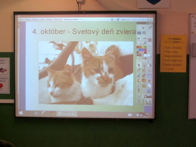Vďaka patrí rovnako žiakom prvého stupňa, ktorí myšlienku ochrany zvieratok zilustrovali krásnymi projektmi o domácich miláčikoch, ktoré v rámci environmentálnej výchovy vytvorili počas súťažnej aktivity Môj domáci miláčik, spolu s pani učiteľkou Mgr. Darinou Marcinčovou. Vytvoreným pútačom tak poukázali na dôležitosť domácich zvierat, ich význam i nevyhnutnú starostlivosť.
