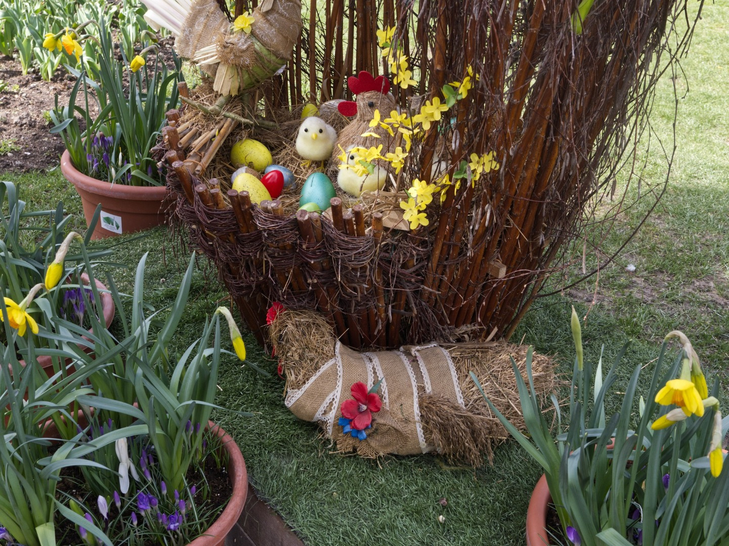 Park pri Kaplnke sv. Michala na Hlavnej ulici zdobí jeden veľkonočný košík s kohútom, sliepkou a kuriatkami a druhý so zajačikom.