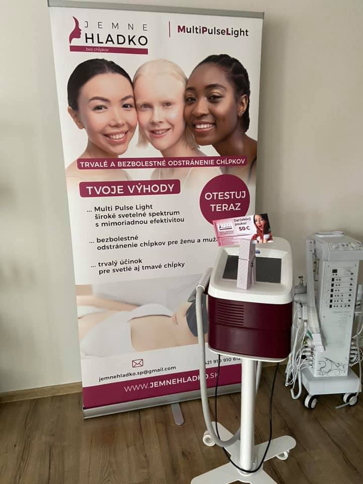 Vďaka odbornému poradenstvu ste u nás správne. Naša inovácia je vrcholom medzi možnosťami odstraňovania chĺpkov. Jediná technológia MPL 4G Multipulselight na svete s intenzívnymi filtrovanými svetelnými impulzmi bliká dôkladne na chĺpky na požadovanom mieste a natrvalo ich odstráni. Sotva citeľný a úplne bezbolestný postup je pre Vás zárukou, že otravné sedenia, zbytočné pokusy, bolestivé zákroky sú odteraz minulosťou. Spríjemnite si svoj život a zažite hodvábne hladkú pokožku.
