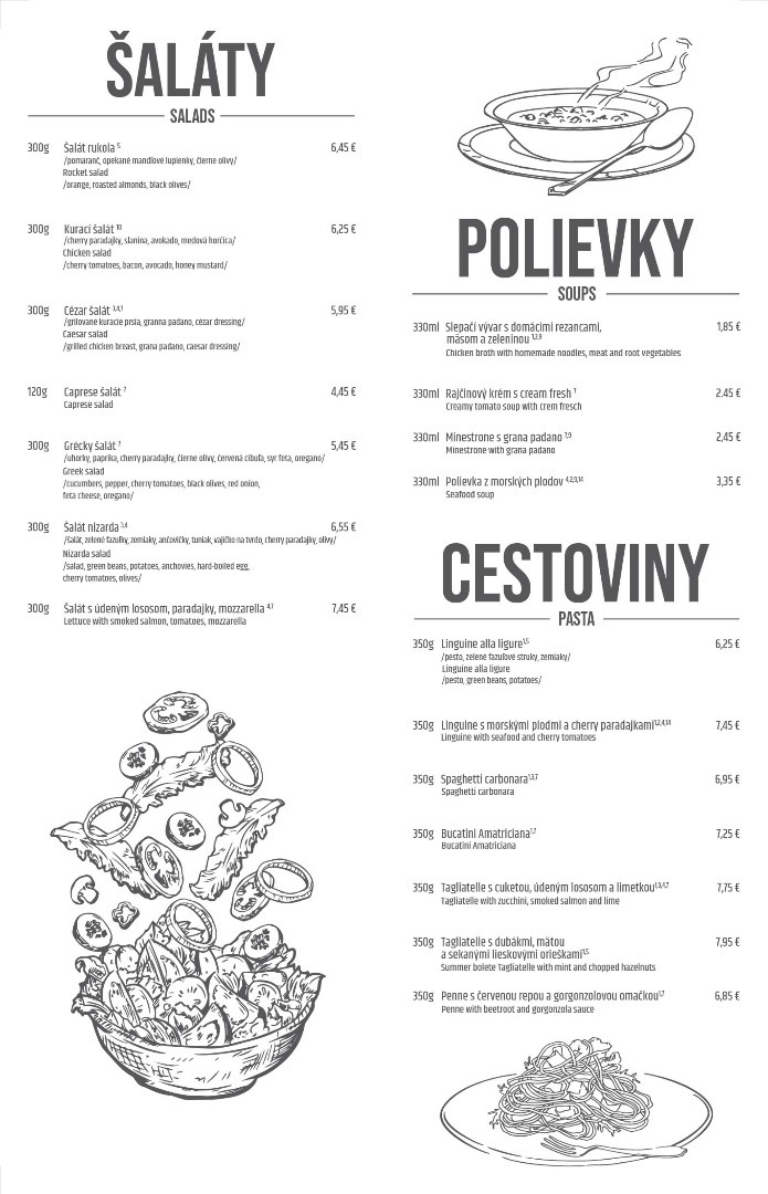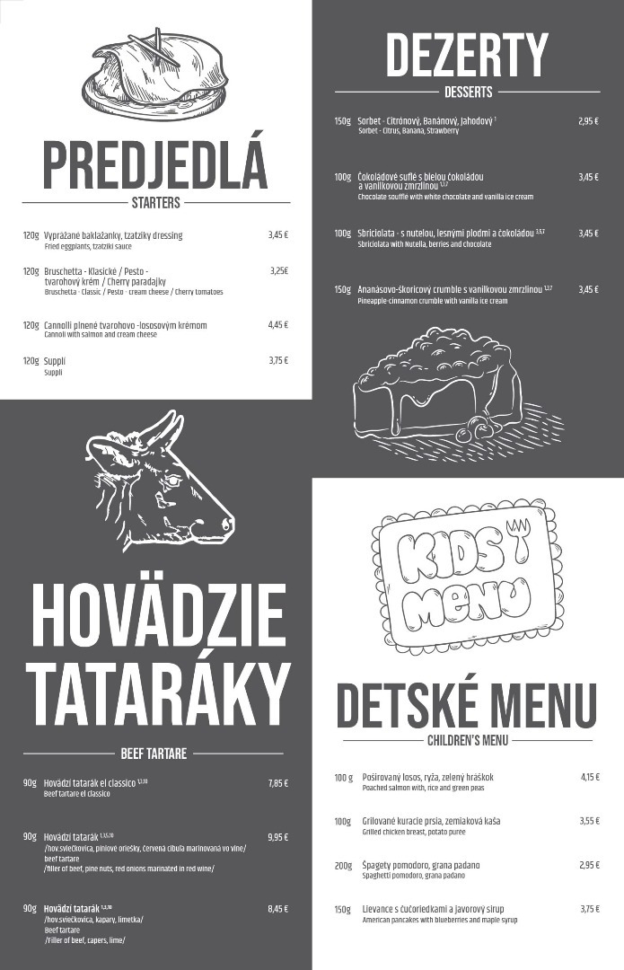 Jedálny lístok: