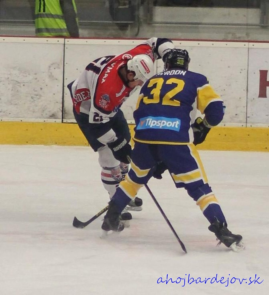 Úvod prostrednej časti hry bol v znamení extraligistu, avšak gól strelil Bardejov. Baláž našiel voľného Kalináča a ten už vedel, čo má s pukom urobiť. Po góle domáci ožili a súpera zatlačili, avšak druhý presný zásah neprichádzal. Ani v tretej tretine sa diváci gólovej prestrelky nedočkali, oba celky pozorne bránili. Záverečné minúty patrili domácim, no gól nedokázali streliť. Rozhodnutie nepadlo ani v predĺžení a tak o víťazovi museli rozhodnúť až samostatné nájazdy. Viac šťastia mali hostia, rozhodujúci nájazd premenil Tibenský.