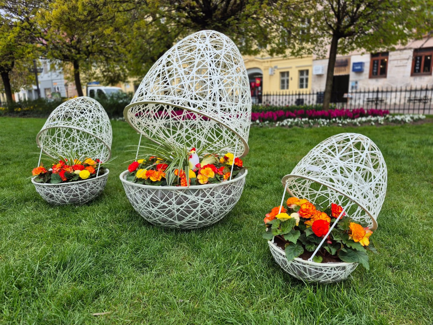 Návštevníkov parku pri Fontáne znamení zase potešia tri farebné plastové veľkonočné vajíčka v prepletanom dizajne. Atmosféru dopĺňa aj jarná kvetinová výsadba, ktorá parky rozžiari sviežimi farbami. Príďte si užiť jar a sviatočnú náladu priamo v srdci mesta.