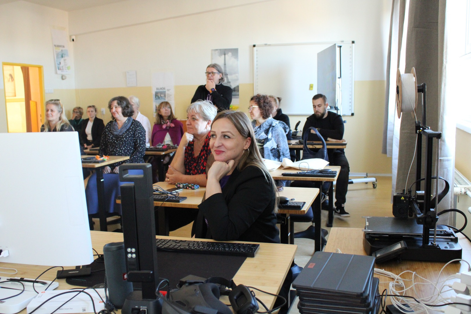 Pedagógovia zo ZŠ Hroncova, ZŠ Ľ. Fullu, ZŠ Staničná a ZŠ Tomášikova si pozreli a vypočuli sériu praktických ukážok, ako možno nástroje umelej inteligencie využiť pri vyučovaní odborných aj všeobecnovzdelávacích predmetov.