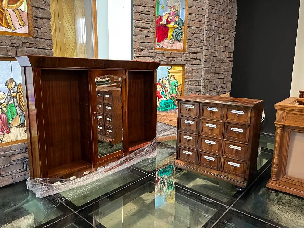 lekárne prostredníctvom viac ako 200 ročného pôvodného mobiliáru, ktorý patrí