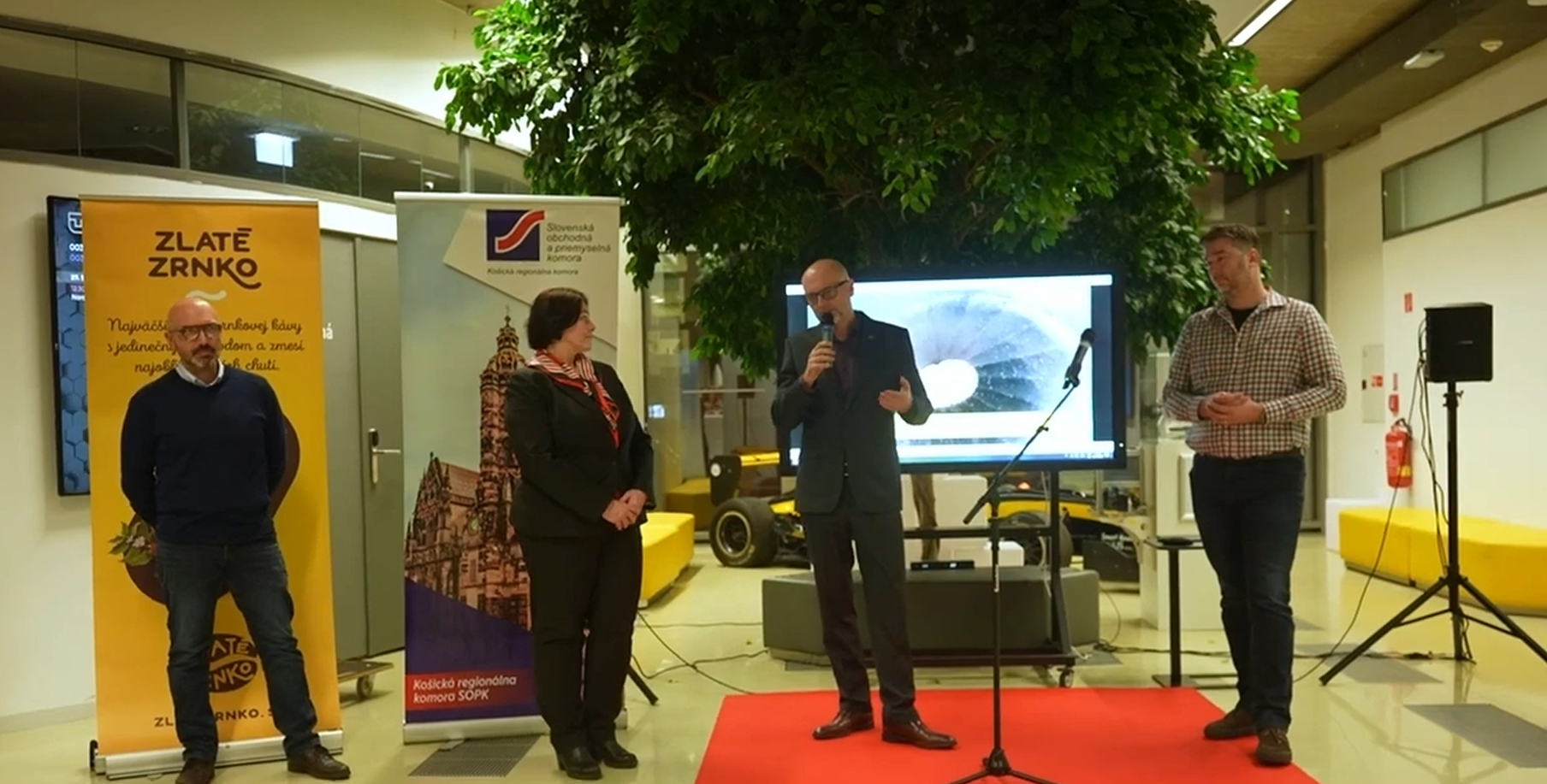 Vôňa čerstvo pražených zŕn sa niesla priestormi Technickej Univerzity v Košiciach, kde tamojšia pobočka Slovenskej obchodnej a priemyselnej komory zorganizovala Networkingovú akciu pre podnikateľov a partnerov. Hlavným lákadlom večera bola prezentácia pražiarne kávy rozmanitých chutí – Zlaté zrnko, spojená s ochutnávkou.