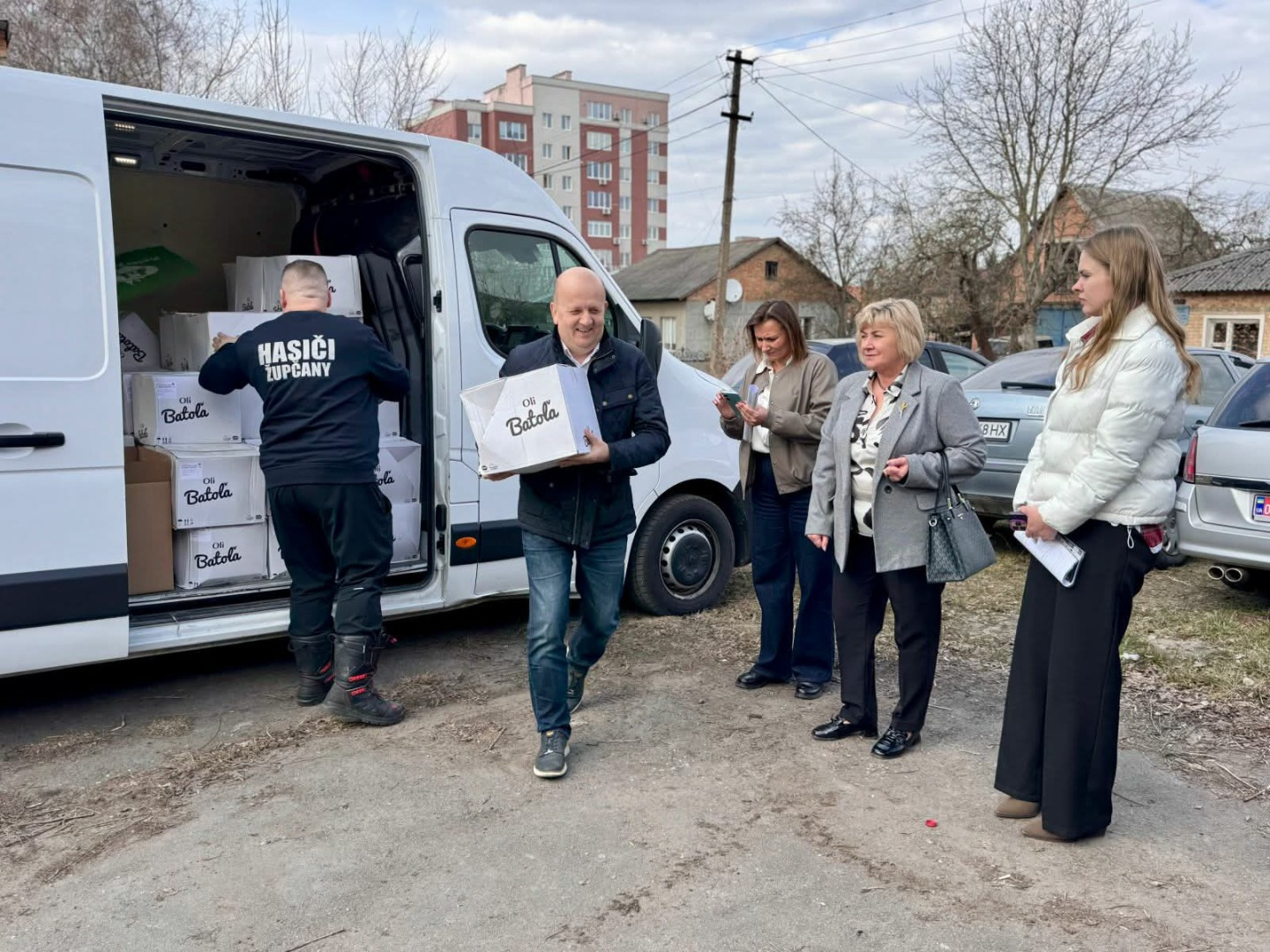 V utorok 24. marca navštívili Novovolynsk primátor Ondrej Brendza, vedúci odboru regionálneho rozvoja Peter Novák a vodič Jozef Vaškanin a priamo na mieste ukrajinským partnerom odovzdali materiál zakúpený z rozpočtu mesta i verejnej zbierky. Cestu zorganizovali spoločne s iniciátorkou zbierky Zuzanou Čobejovou z miestneho združenia SISA a veľmi nápomocní boli aj traja členovia Občianskeho združenia Prešov pomáha.