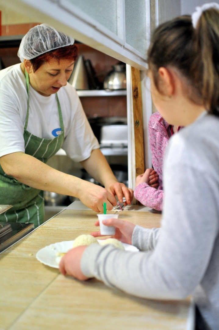 Naše panie kuchárky často pripravujú jedlá podľa nových receptúr, no v tento deň varili pod taktovkou kuchára Štefana Kišša z firmy Nestlé. Taliansku polievku minestrone bez mäsa sme už poznali a znova chutila skvele. Hlavné jedlo nám názvom nepripomínalo taliansku kuchyňu, ale lahodná chuť kuracích pŕs s hubovou omáčkou s dusenou ryžou bola predsa len iná, ako bežne poznáme. Jedlo pripravoval v konvektomate, čo je zdravé a rýchle. Za „pranzo ottima“ (výborným obedom), ako by povedal taliansky gurmán, nasledovala ochutnávka tiramisu ako prezent od kuchára pána Štefana Kišša a firmy Nestlé.