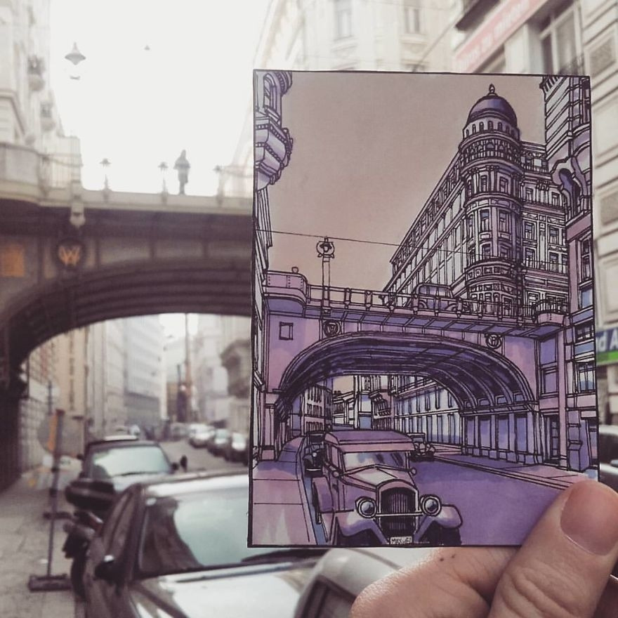 Austrálsky ilustrátor a cestovateľ Maxwell Tilse žije v Londýne, no zmapovanú má už celú Európu. Navštevuje mestá na starom kontinente a vytvára kresby každého mesta. Presne tak, ako ich vidí on. Aj takouto formou si vytvára pamiatku na všetky zaujímavé kúty, ktoré navštívi.