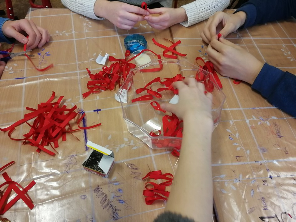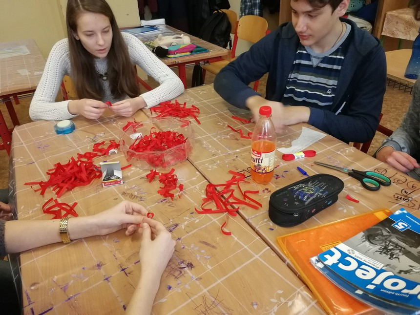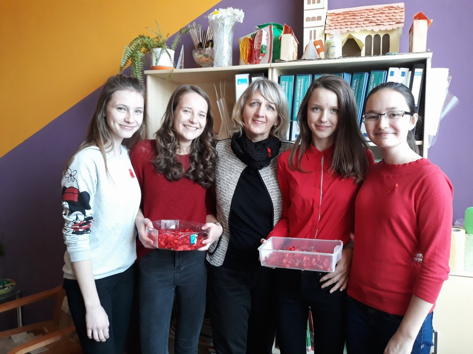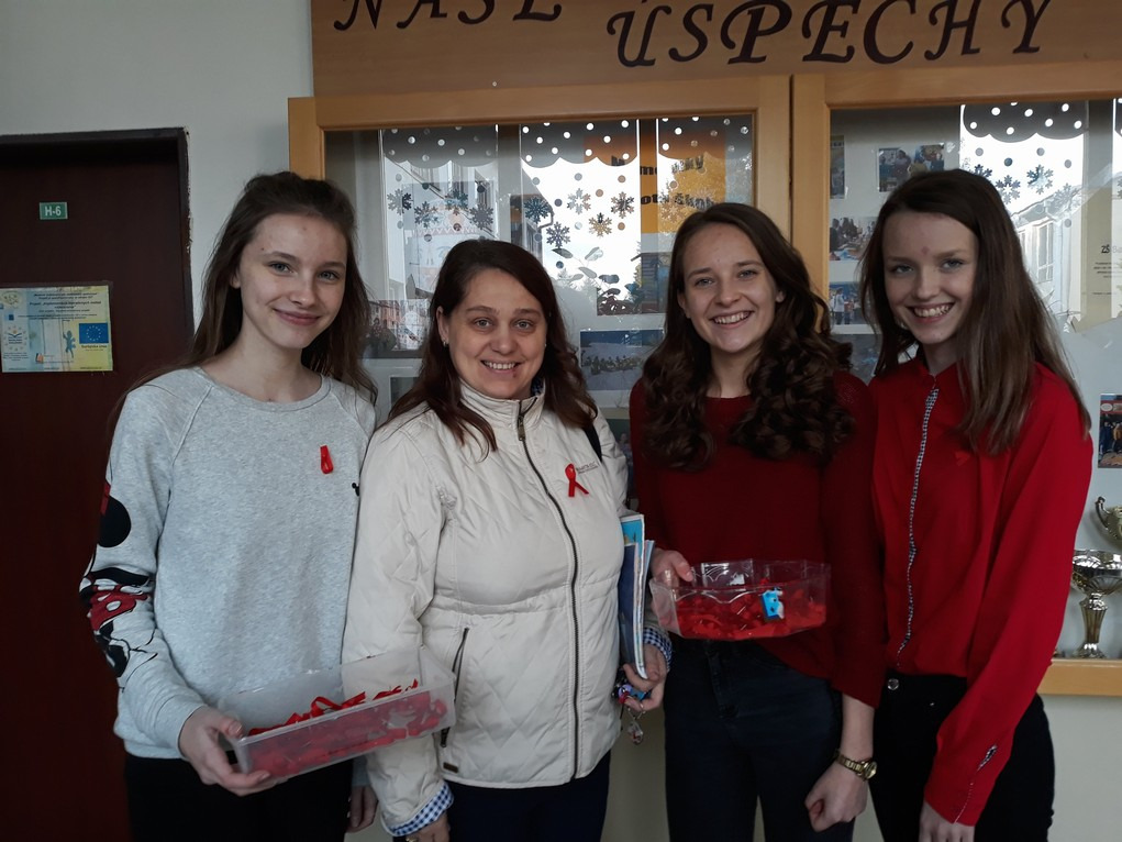 To, že sa žiaci zaujímajú o ľudí s HIV a AIDS, nie sú k problému ľahostajní, a venujú sa vzdelávaniu, aby sa HIV nešírilo, dokazovali červené stužky, ktoré si sami zhotovili a nosili v dňoch od 27.11.- 1.12. (Svetový deň boja proti AIDS).