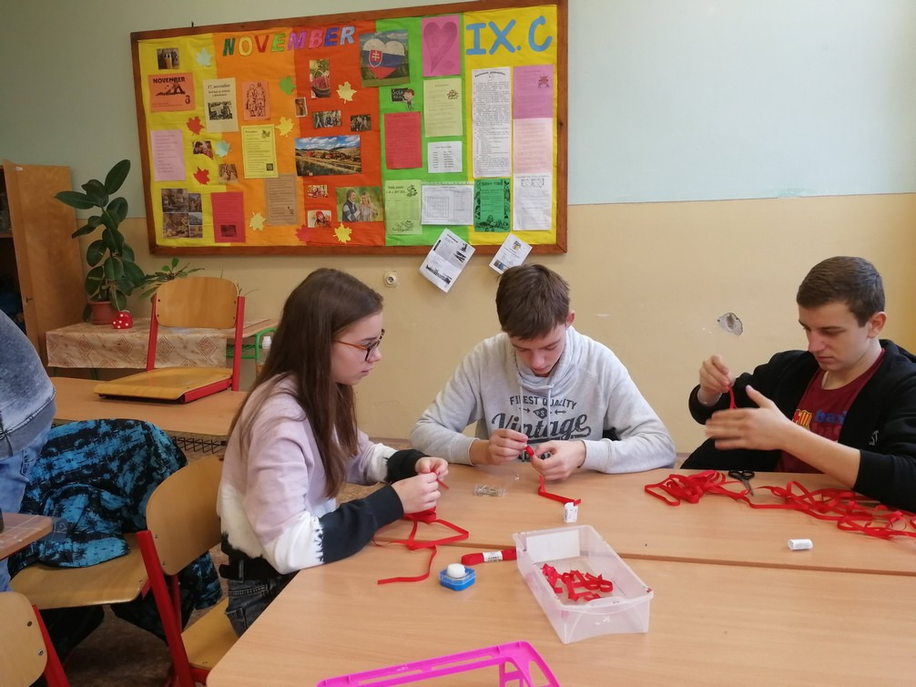 V kampani Červená stužka sa tento rok spojilo vyše 500 škôl Slovenska a my sme hrdí, že sme boli jednou z nich. Červené stužky nám tento školský rok do tried priniesli žiaci IX.C triedy Bianka Michalcová, Andrea Tejová, Dominika Fečaninová a Vanesa Rybovičová