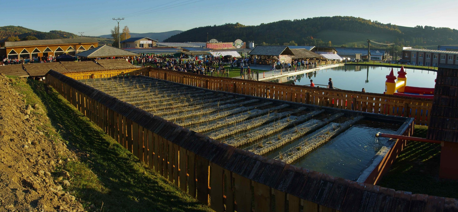 pripravené aj detské ihrisko s preliezkami a originálnym dreveným kolotočom,