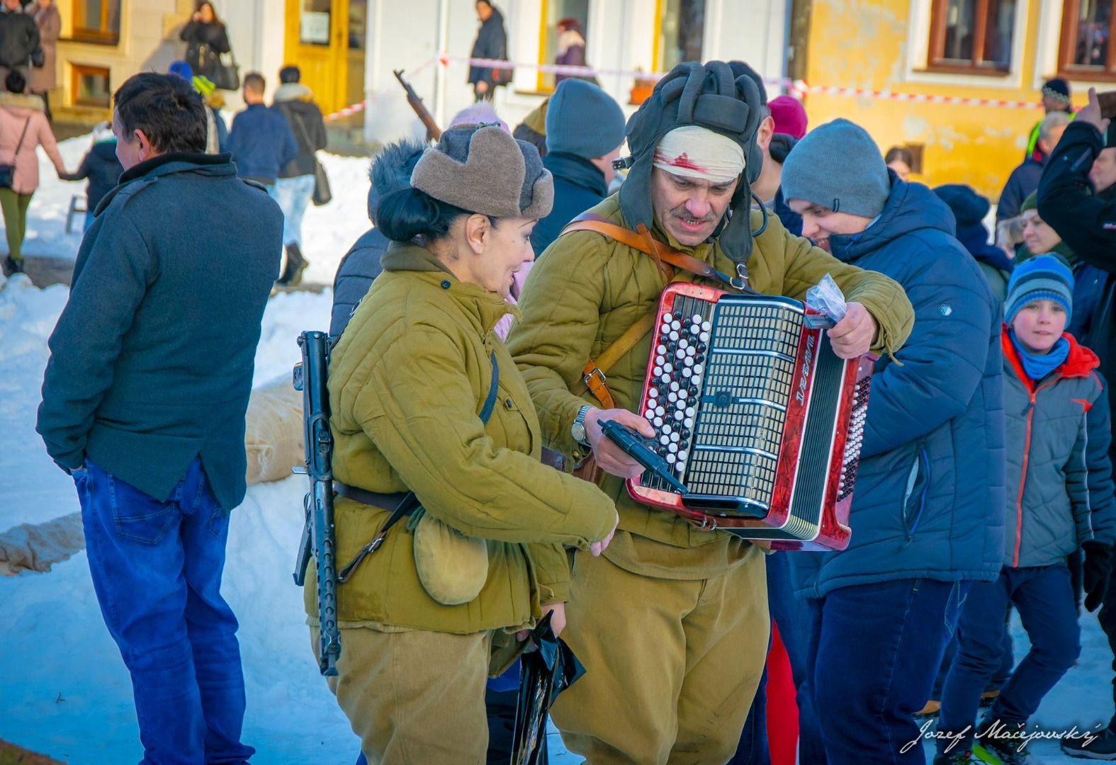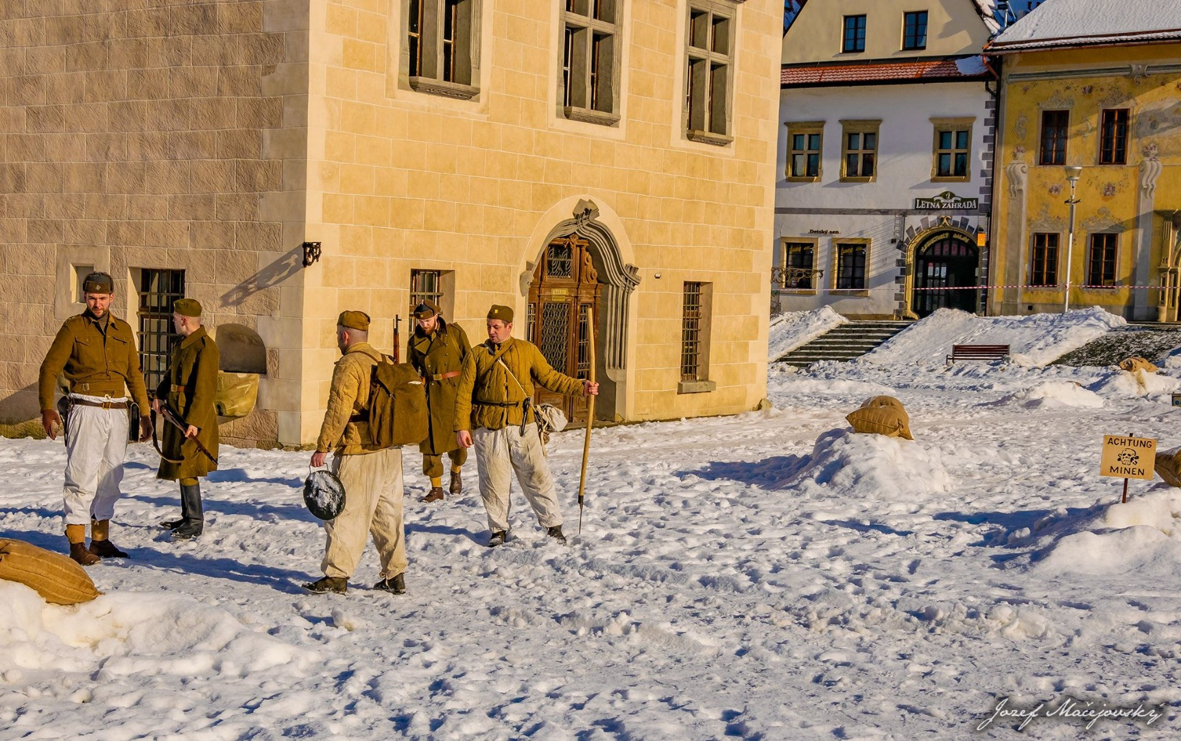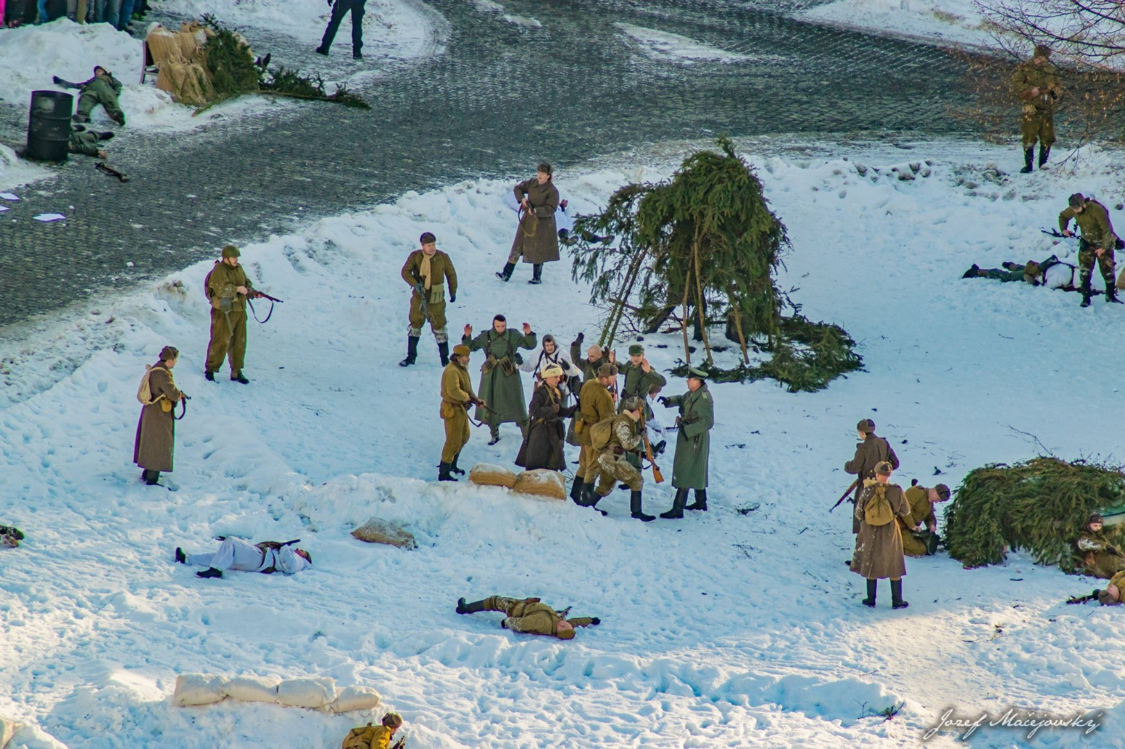 Prítomným divákom ruskí vojaci, nemeckí vojaci, 1. československý armádny zbor