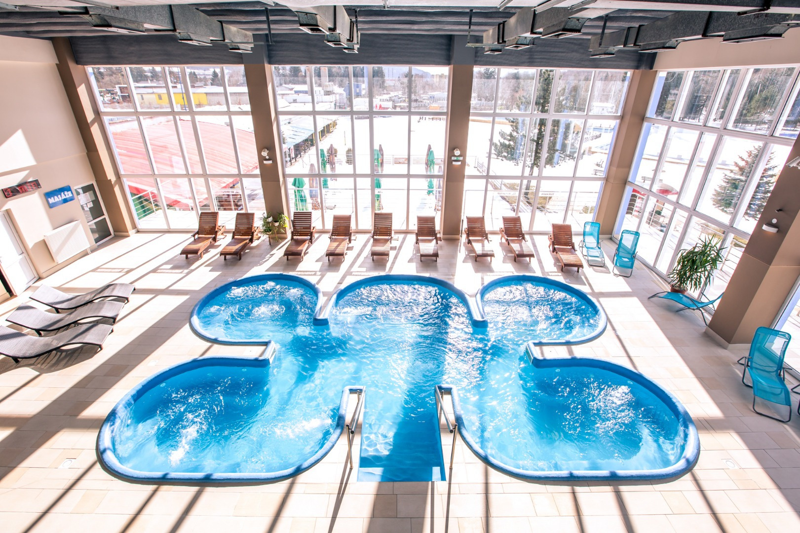 v relaxačnom bazéne je miesto aj na plávanie. Teplota vody sa pohybuje od