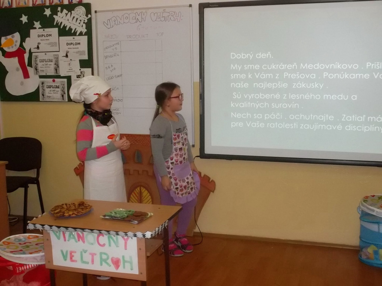 A že to nie je vždy med lízať, vyskúšali si aj naši Mudrlanti z triedy pre intelektovo - nadaných žiakov zo ZŠ na Komenského 23 v Bardejove. V rámci Slohovej výchovy a témy Reklama, bolo na ich pleciach vytvoriť fiktívne firmy, avšak s vhodným predmetom podnikania, aby na vianočnom veľtrhu v čo najvyššej možnej miere oslovili zákazníka. V prípravnej fáze lietali námety spojené s názvami firiem, žiaci ostošesť premýšľali, čo bude predmetom ich podnikania, ako zaujmú a v rámci marketingu tak padali prvé podnikateľské stratégie. Pravdupovediac, vôbec sme netušili ako náš podnikateľský zámer vypáli, asi preto sme v deň vianočného veľtrhu 3.E boli naozaj milo prekvapení.