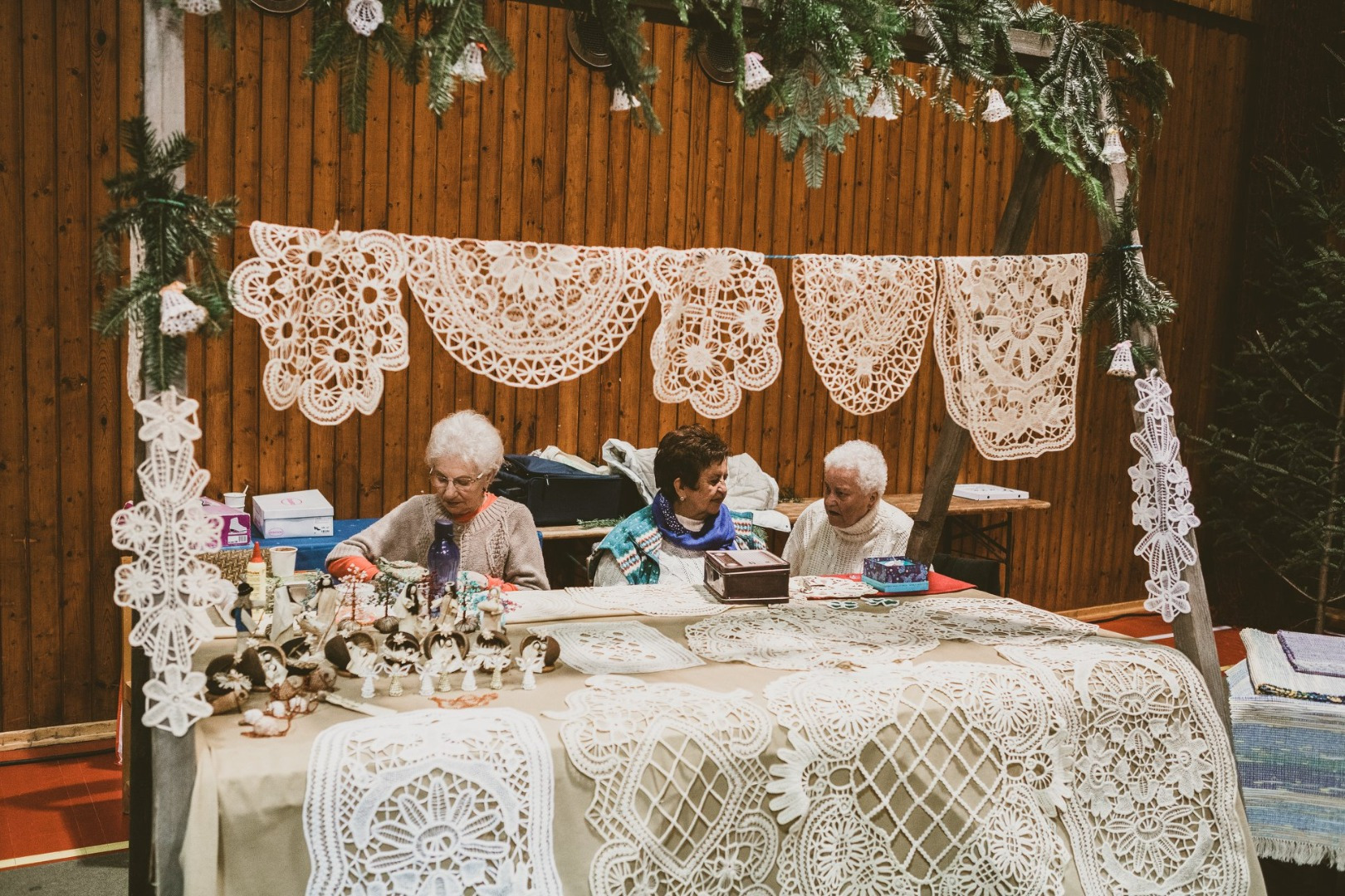 cez ručne vyrábané hračky, štrikované ozdoby, vianočné vence