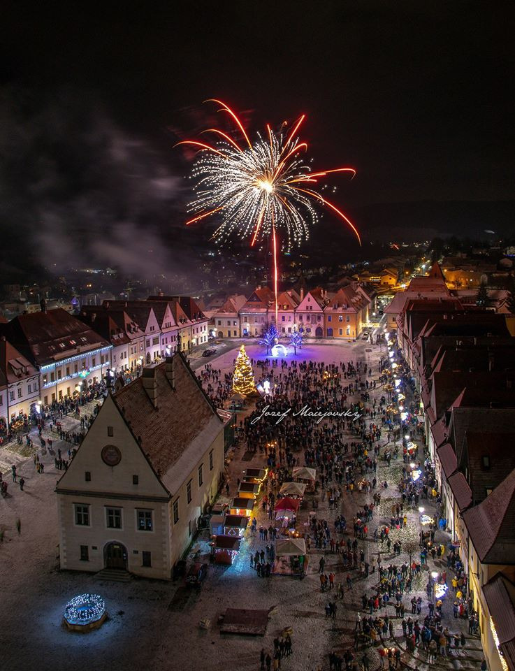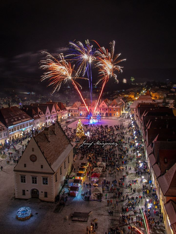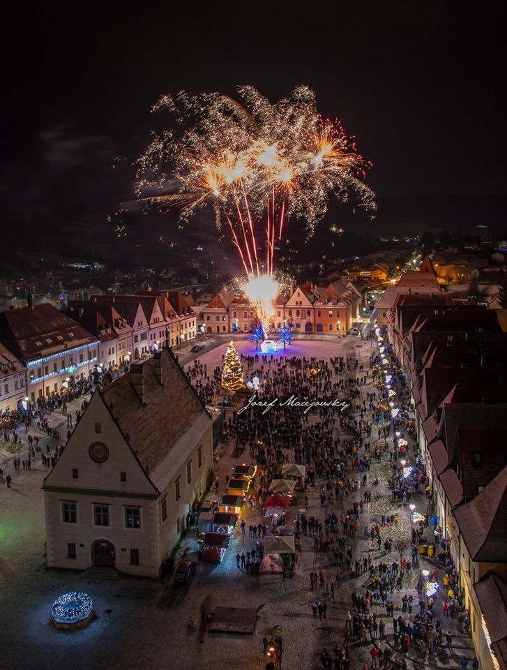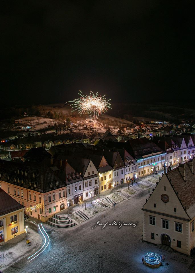 Nový rok 2020 privítali Bardejovčania i návštevníci mesta šesť minútovým ohňostrojom priamo v centre mesta - na Radničnom námestí v Bardejove.