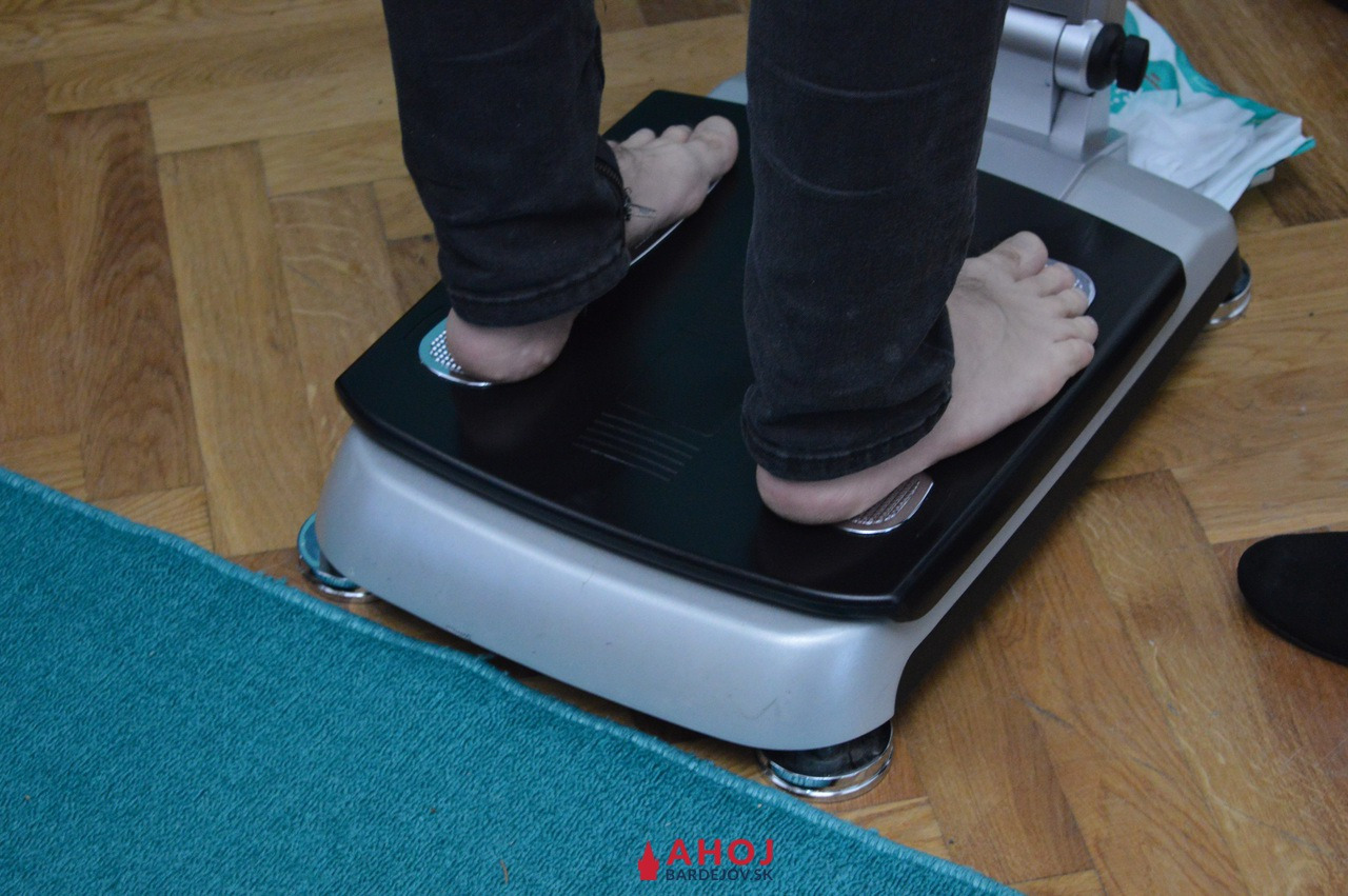 merala sa hmotnosť, obvod pásu, zloženie tela. Pri stánku Bardejovských Kúpeľov