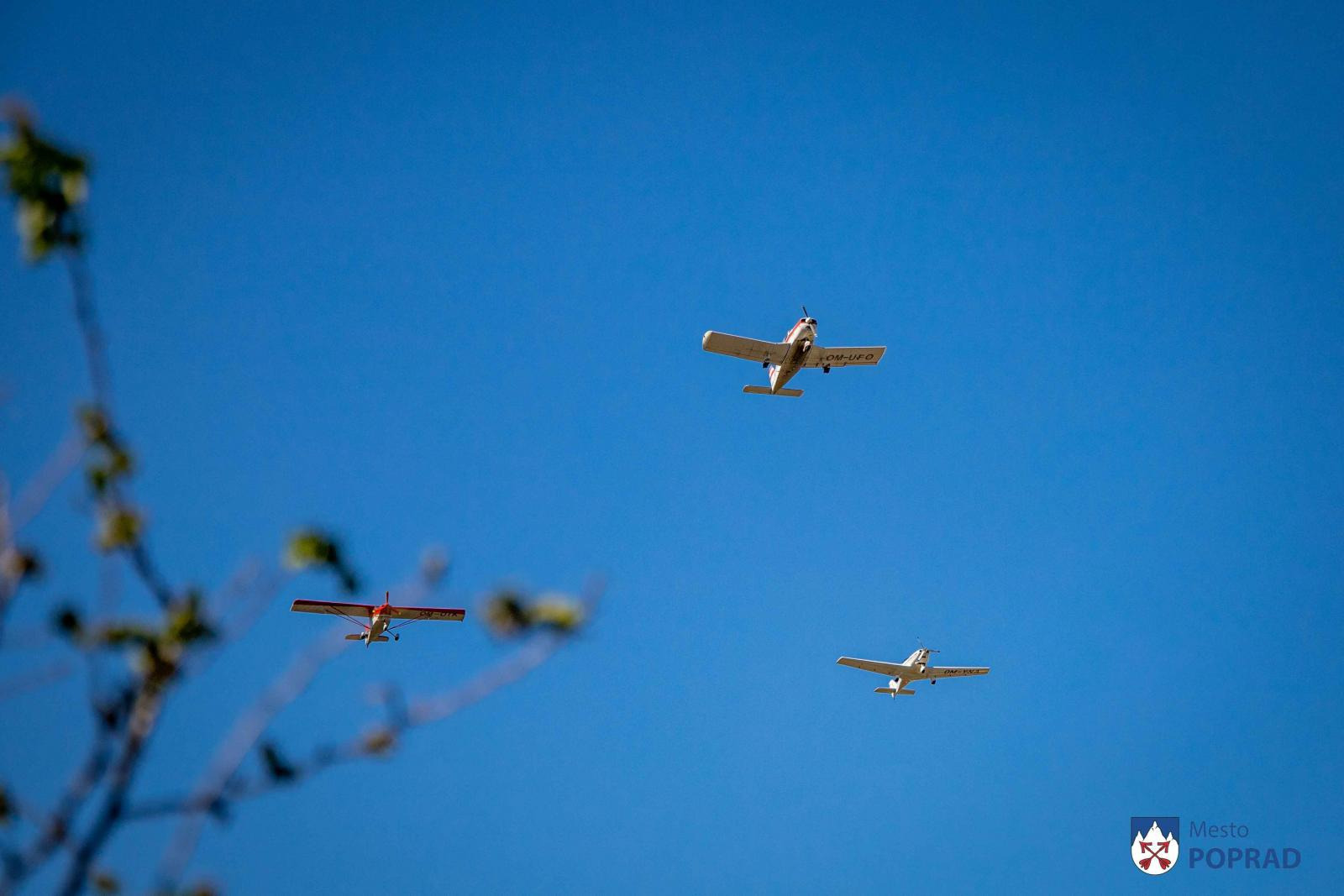 z Aeroklubu Poprad ponad Štefánikovú ulicu a hymnou
