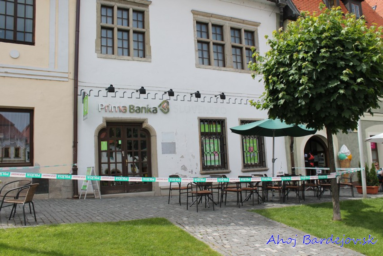 Práve v týchto chvíľach (pondelok, 1. júna 2015 – 14:10 hod.) polícia pátra nahlásenú bombu aj na Radničnom námestí v Bardejove v pobočke Prima banky.