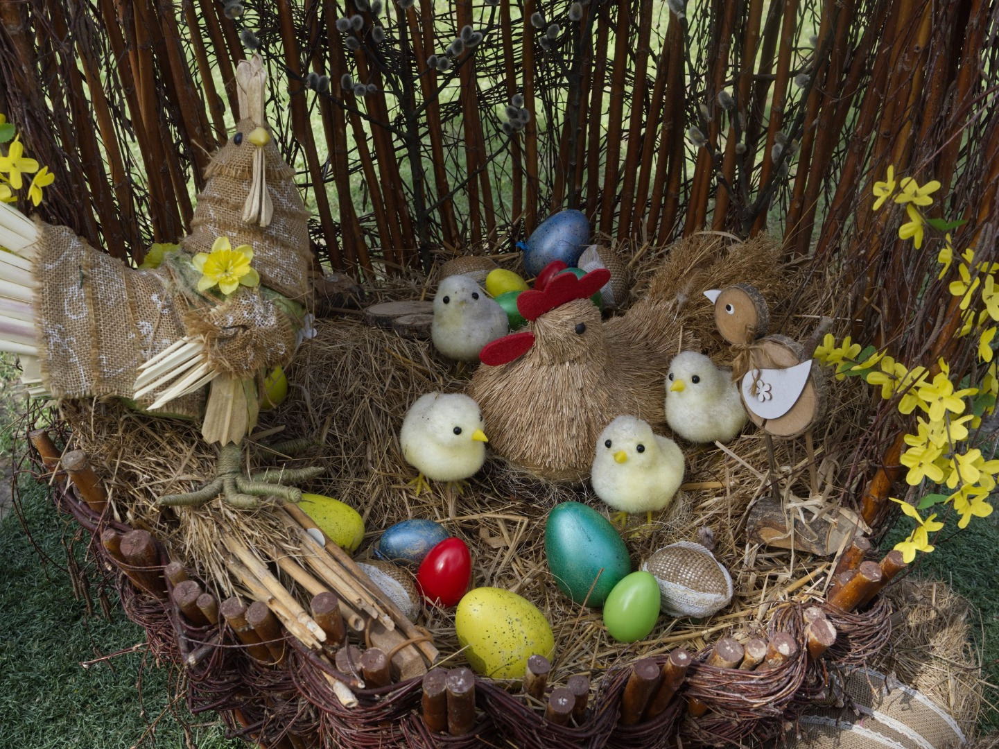 Park pri Kaplnke sv. Michala na Hlavnej ulici zdobí jeden veľkonočný košík s kohútom, sliepkou a kuriatkami a druhý so zajačikom.