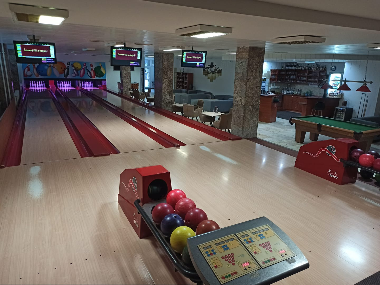 Bowling bar v srdci Bardejovských kúpeľoch disponuje 3 dráhami.
